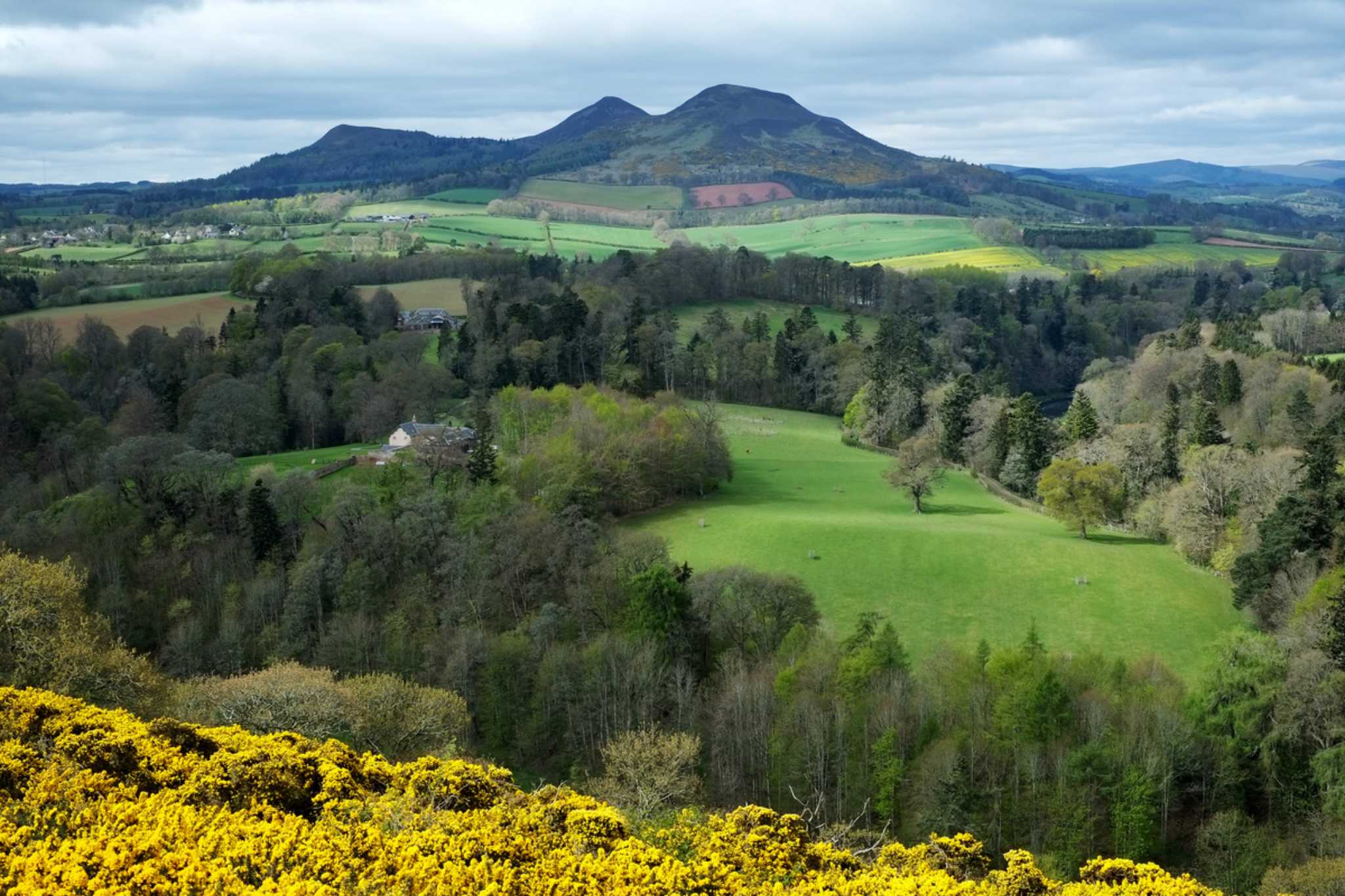 Blick von Scott's View auf die Eildon Hills, Scottish Borders