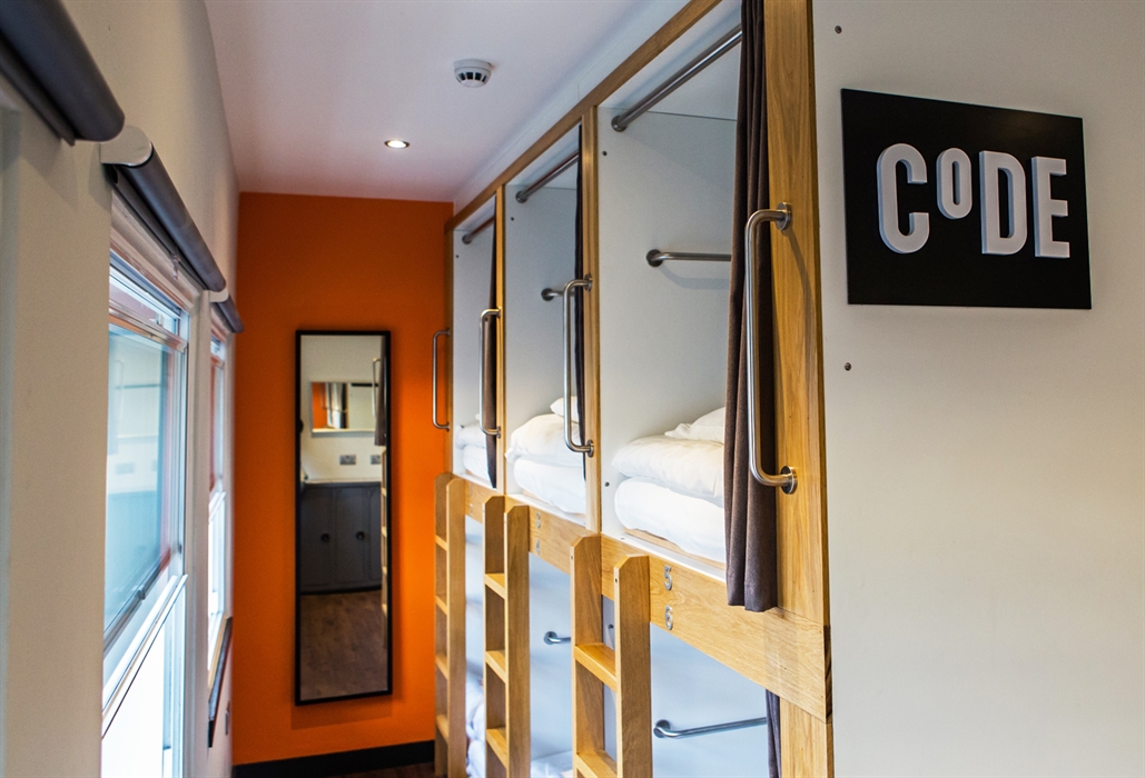 THE LoFT by CoDE Pod Hostels is located in the vibrant and beautiful city centre of Edinburgh, 2 mins walk to Princes Street. Our sophisticated ‘Pods’ are designed with maximum comfort and privacy in mind. The high-security keypad entry system with a personalised key code ensures the safety of each guest at CoDE!