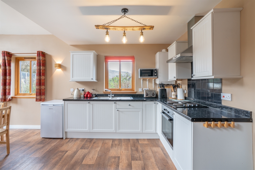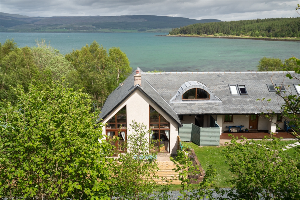 Daisy Cottage has a nice position by Fishnish bay and is a modern and very well equipped cottage sleeping 6 people. The living are is a bright and open plan space with floor to ceiling windows, comfy seating and door opening to the rear garden.