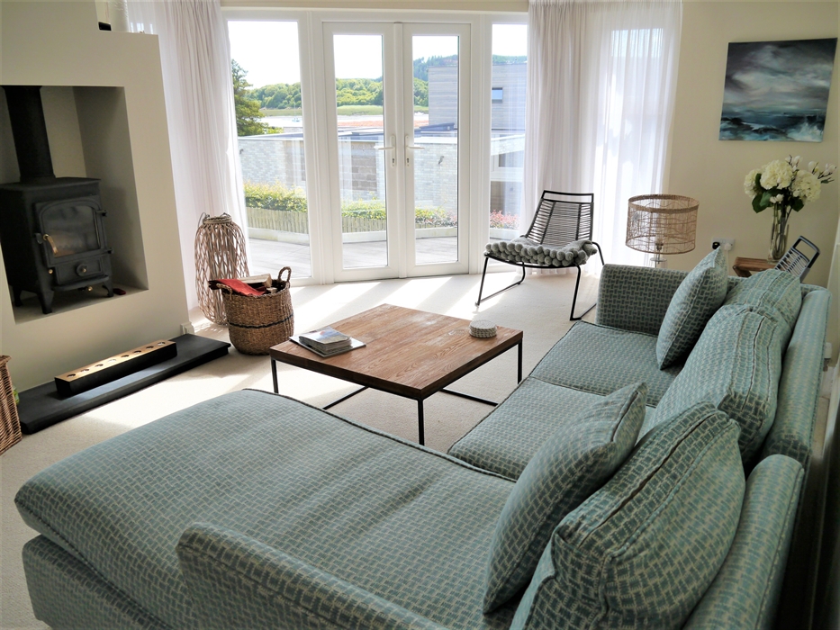 The house is fully accessible with lift to first floor; balcony with views down the estuary and to Screel Hill while the secure enclosed large garden to the rear is a sun trap for quiet relaxation and outside dining. The spacious and modern design ensures that it is light and airy while still being warm and cosy in winter, it is perfect for those looking for a family or group holiday in a luxury property. There are sitting rooms on both the ground floor and first floor with each having a wood burning stove.