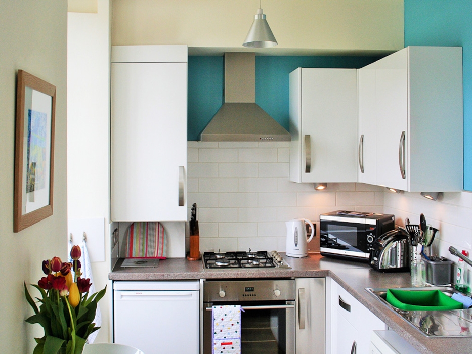 The apartment has a double bedroom with a king-sized bed and a second bedroom that can be set up with either 1 or 2 single beds. The property comes with TV and DVD player (& DVD’s) and free wi-fi.
