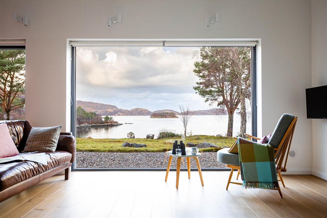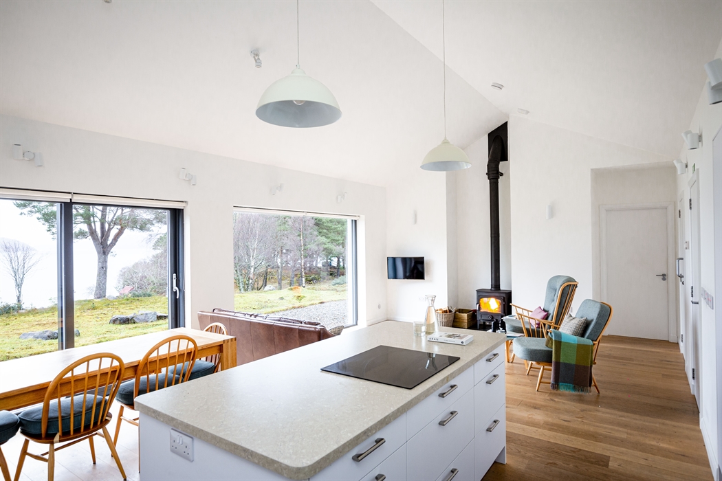 Tigh Beag is a luxurious holiday home providing accommodation for four people. Completed in 2017, the house sits in sheltered woodland on the south shore of Loch Shieldaig. The house overlooks a beautiful bay, home to seals, otters and herons and the direct access to the water is ideal for sea swimmers and kayakers. Tigh Beag has an EV charging point and Starlink high-speed internet for guests' use.
