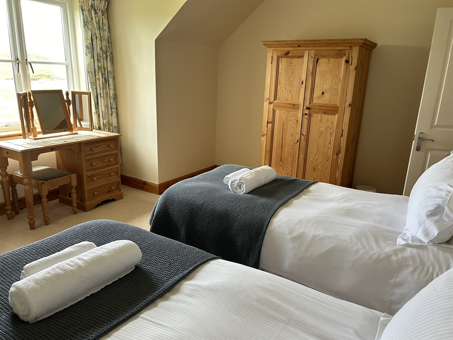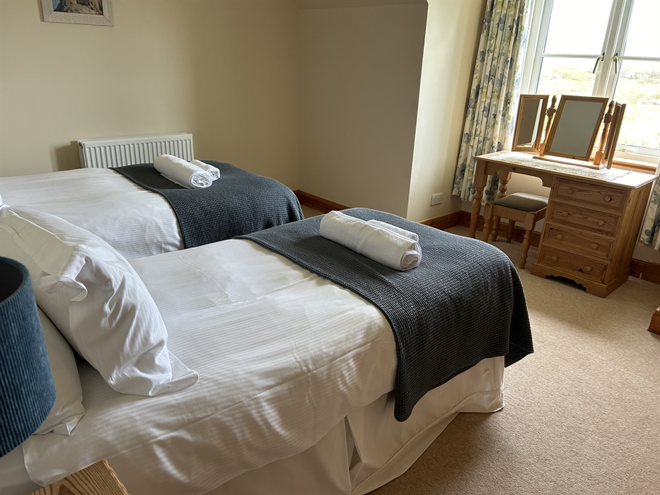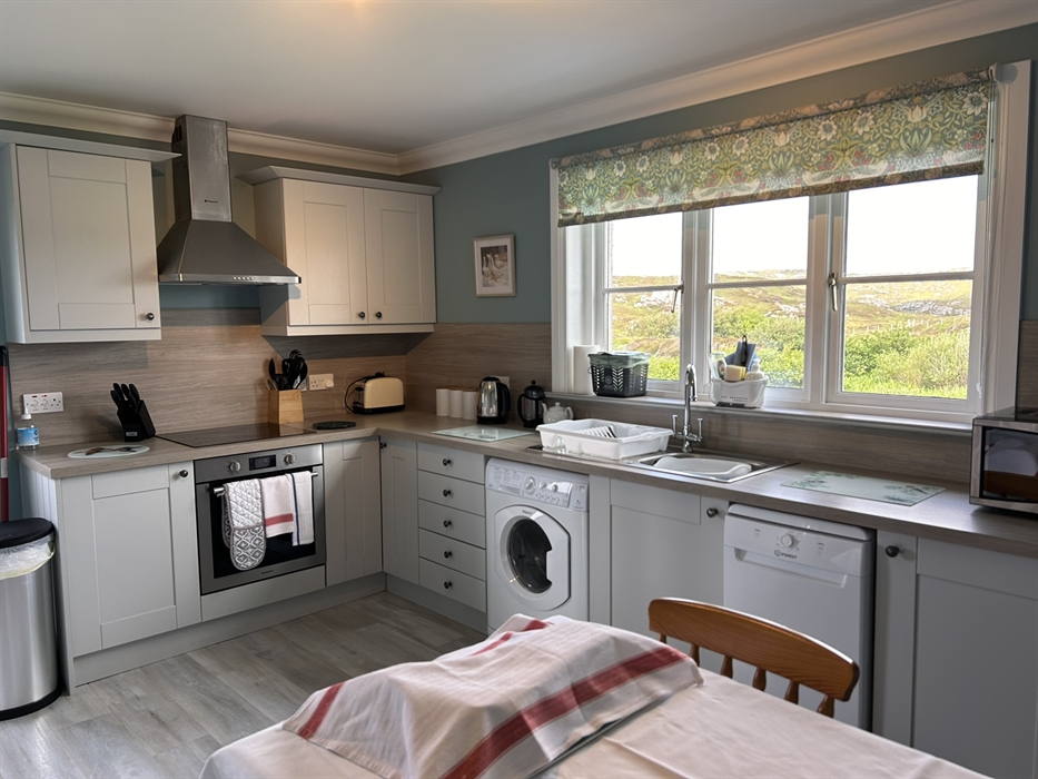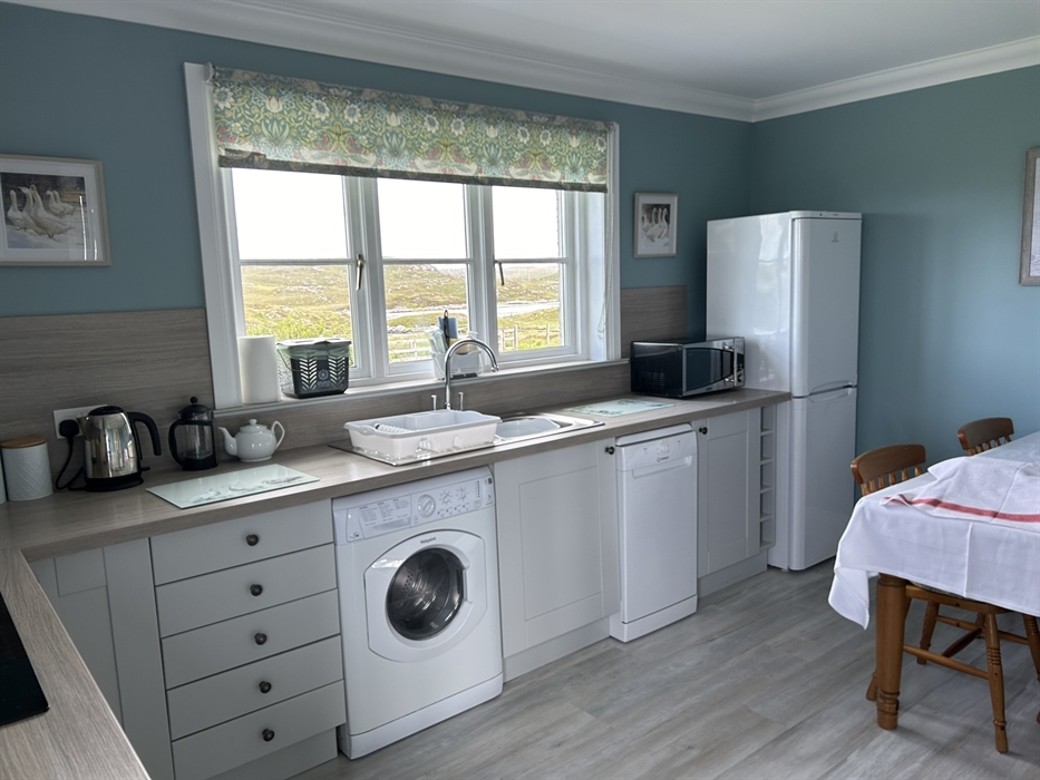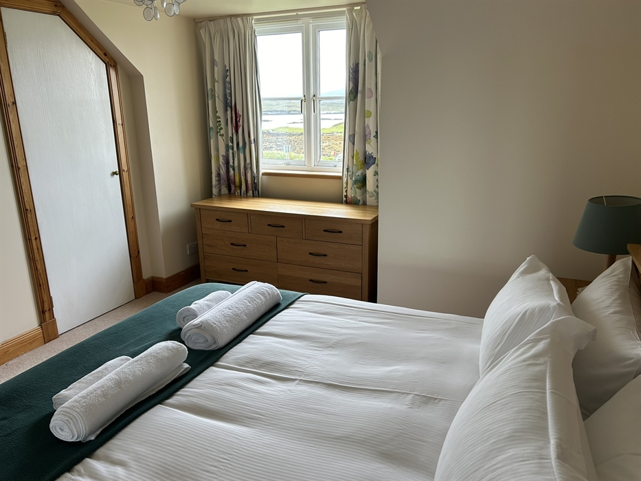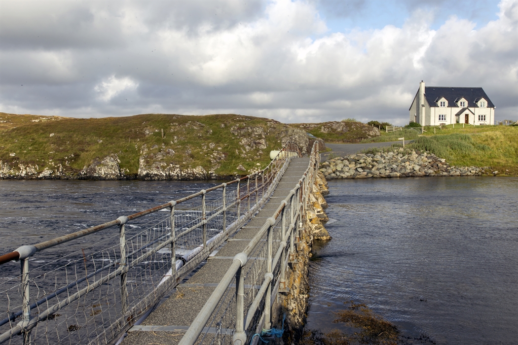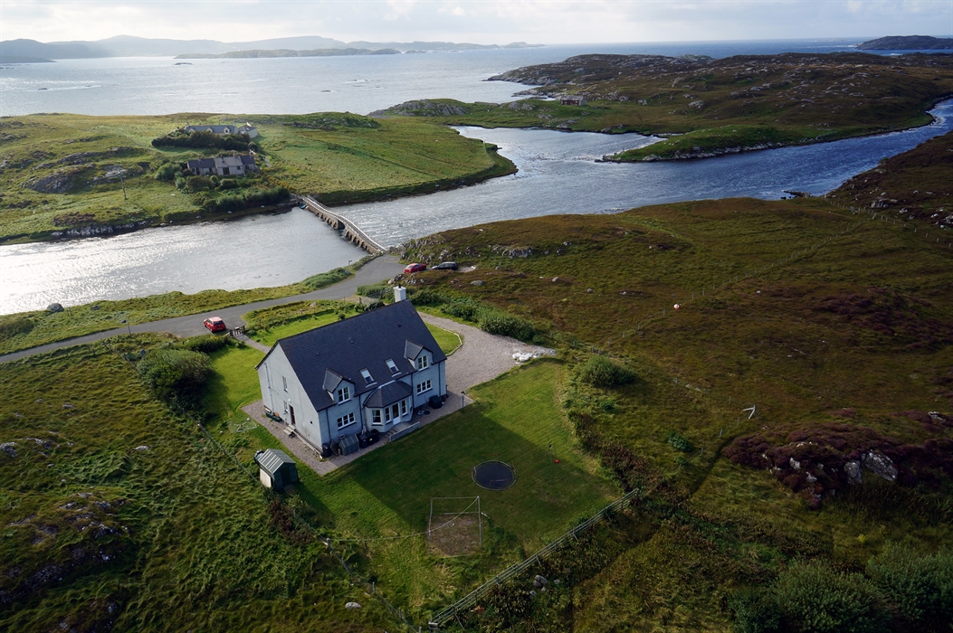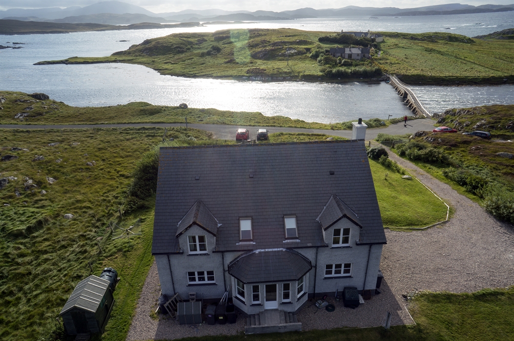 This recently built, semi-detached croft house is set in one of the most beautiful locations on the Isle of Lewis overlooking the Kyles of Valasay where grey seals, dolphins and many species of sea and shore birds are regularly to be seen. At the bottom of the drive is a 100 year old footbridge across a Marine Special Area for Conservation. This designation has been given to protect rare varieties of marine invertebrates and seaweeds. The flow of water changes with the tides and offers a unique atmosphere to the house as you lie in your bed listening to the soothing sound of the water flowing.