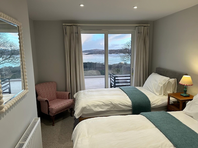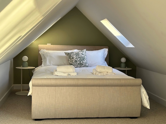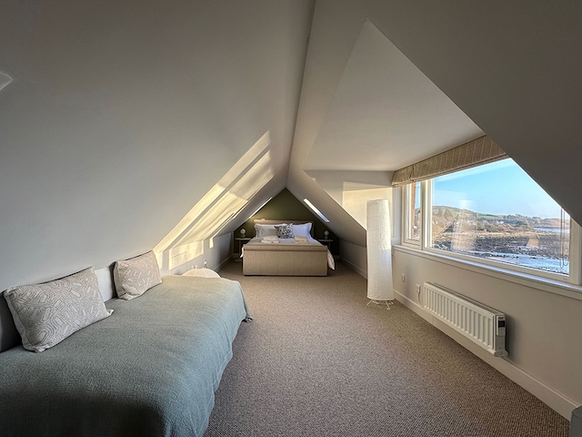 Second Floor: Gallery King size bedroom with sea view and additional futon beds to give the option of a triple room and are ideal for small children.