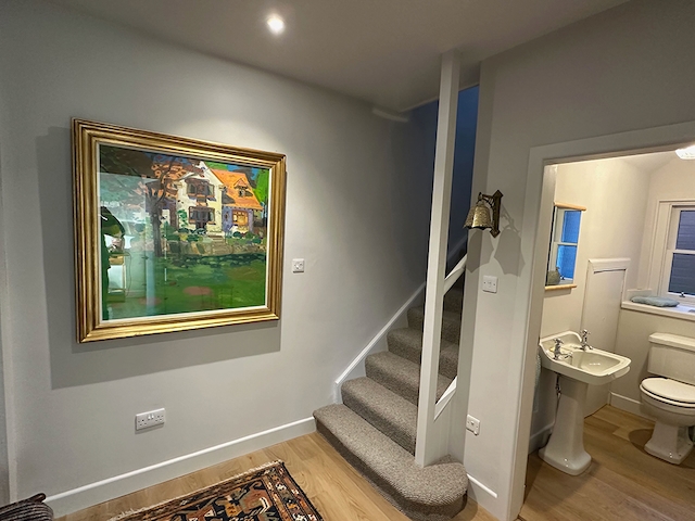 First Floor: Master bedroom with King size (zip ‘n’ link) bed which can become a twin, please let us know your preference on booking, seating area with uninterrupted sea views and access to a large shared terrace, ensuite bathroom with over bath shower; Twin bedroom with sea view and door to shared terrace; Double bedroom with King size (zip ‘n’ link) bed with ensuite shower room; Family bathroom with over bath shower and a sea view. Stairs to second floor.
