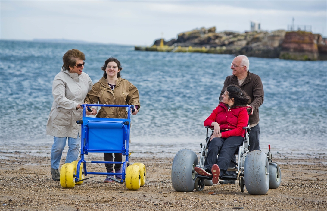 Loan of child's and adult beach wheelchair and walker in North Berwick.