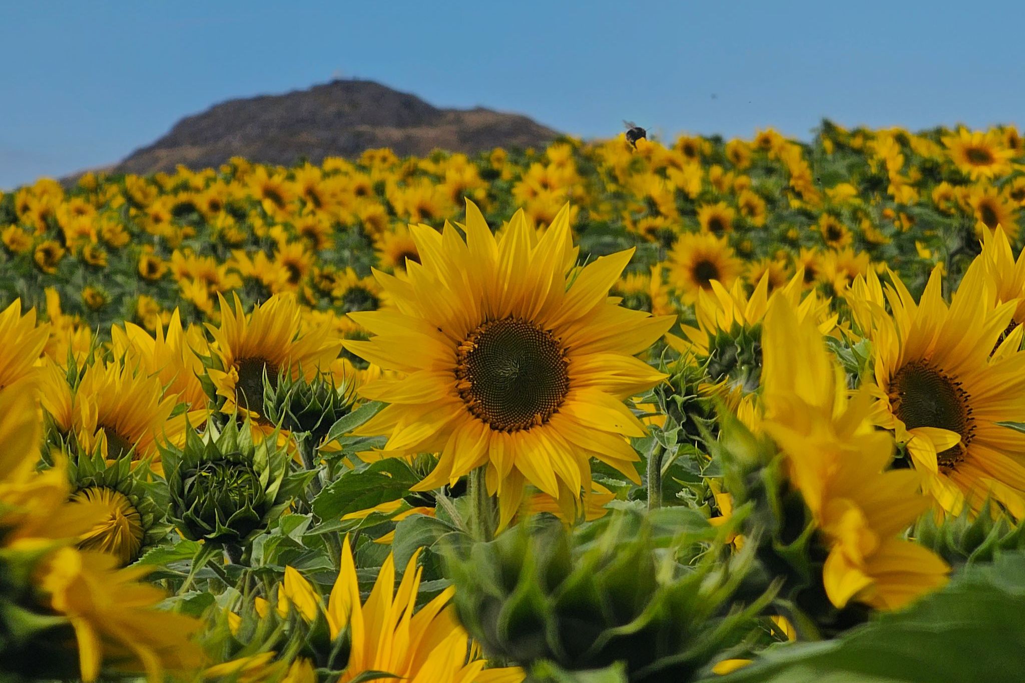 Sonnenblumen auf dem Balgone Estate, North Berwick