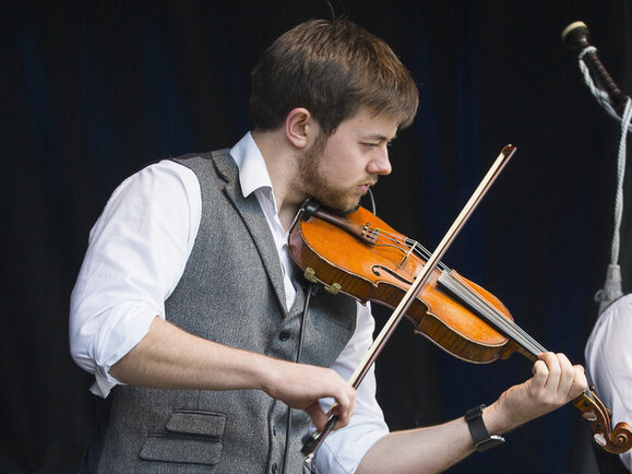Ein Fiddle-Spieler einer Ceilidh-Band