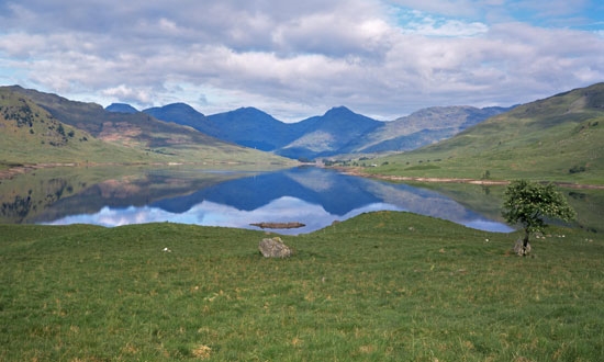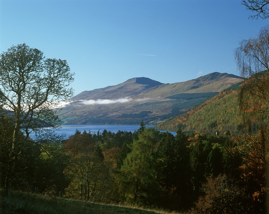 Rising out of lush greenery, Ben Vorlich and its neighbouring Munro, Stuc a' Chroin, dominate the landscape around them.