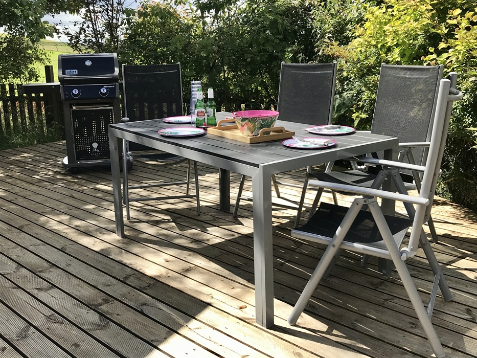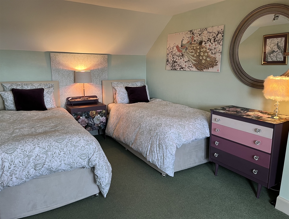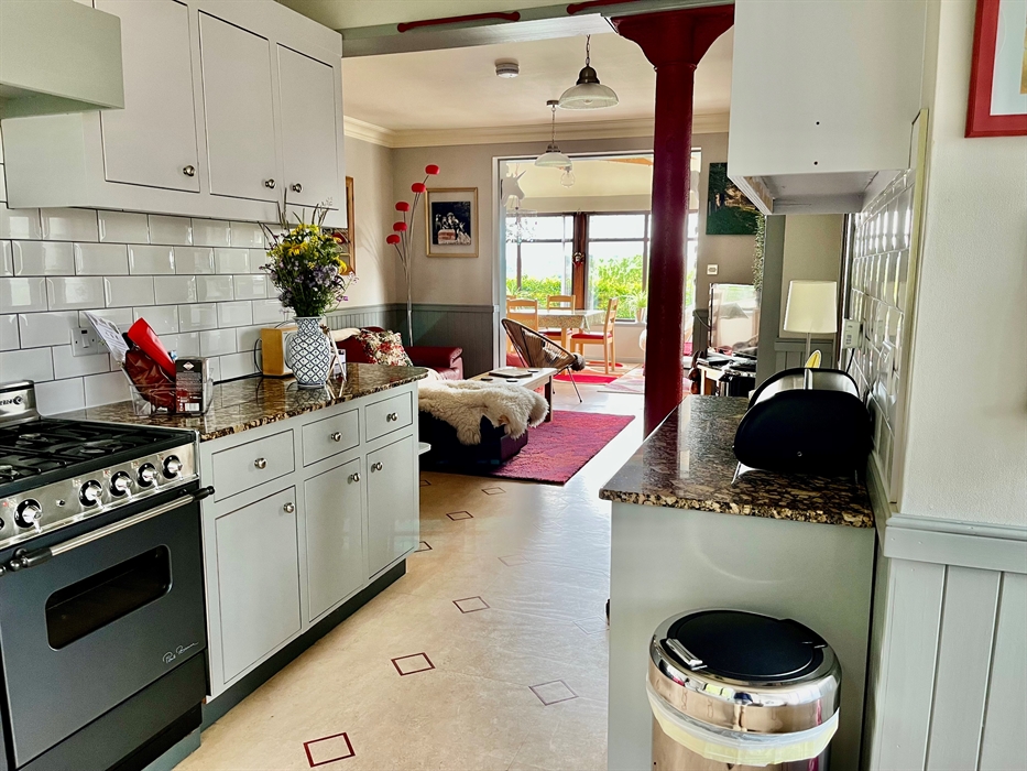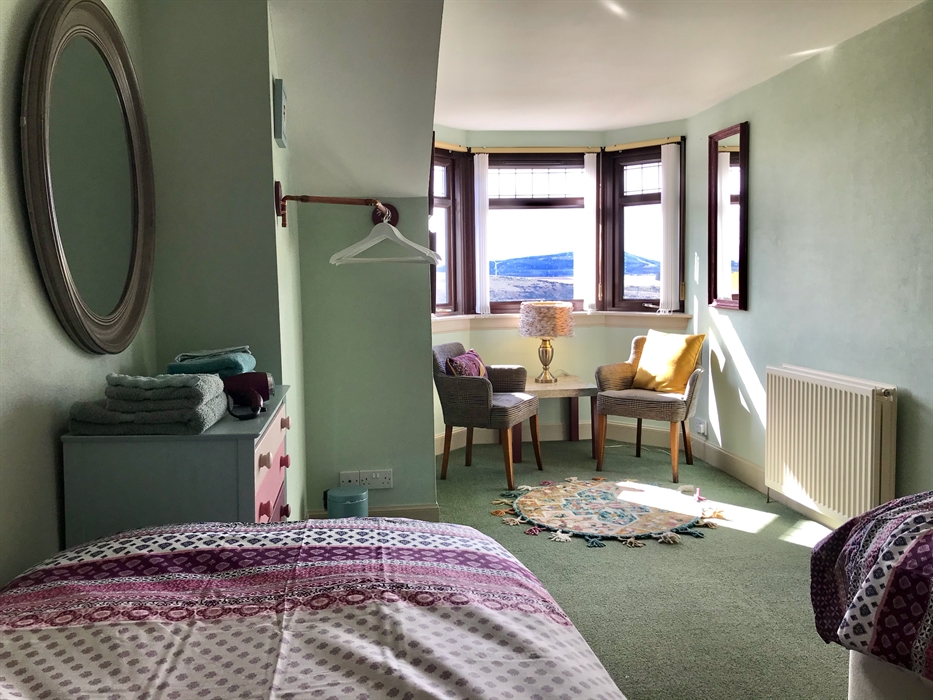 The house itself has 4 bedrooms and a further versatile room which can serve as a bedroom, or additional communal space. An open plan kitchen, day room and sun lounge provide views from the lovely back garden, right through to the spectacular views from the front of the house, and has enough space for everybody to muck in with the food preparation! The gas/electric range cooker, double Belfast sink and stainless steel fridge/freezer in the very well equipped kitchen are all large enough to easily cope with catering for 7. A lot of thought has gone into the requirements of catering for a group, with a generous selection of crockery, cutlery, glasses and kitchen ware. (Also, a dishwasher, microwave, coffee maker, etc.)
