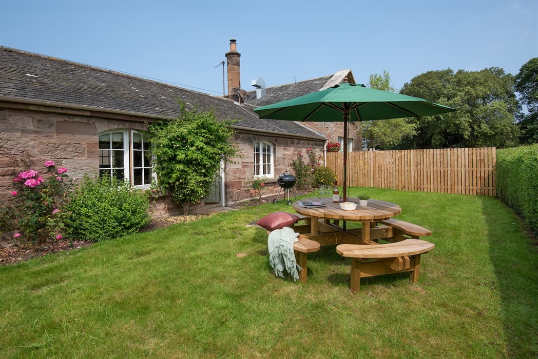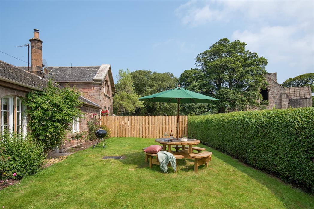 Outside, Laurel Cottage benefits from its very own private lawned garden, complete with charcoal barbecue and views of the 15th-century Dunglass Collegiate Church.