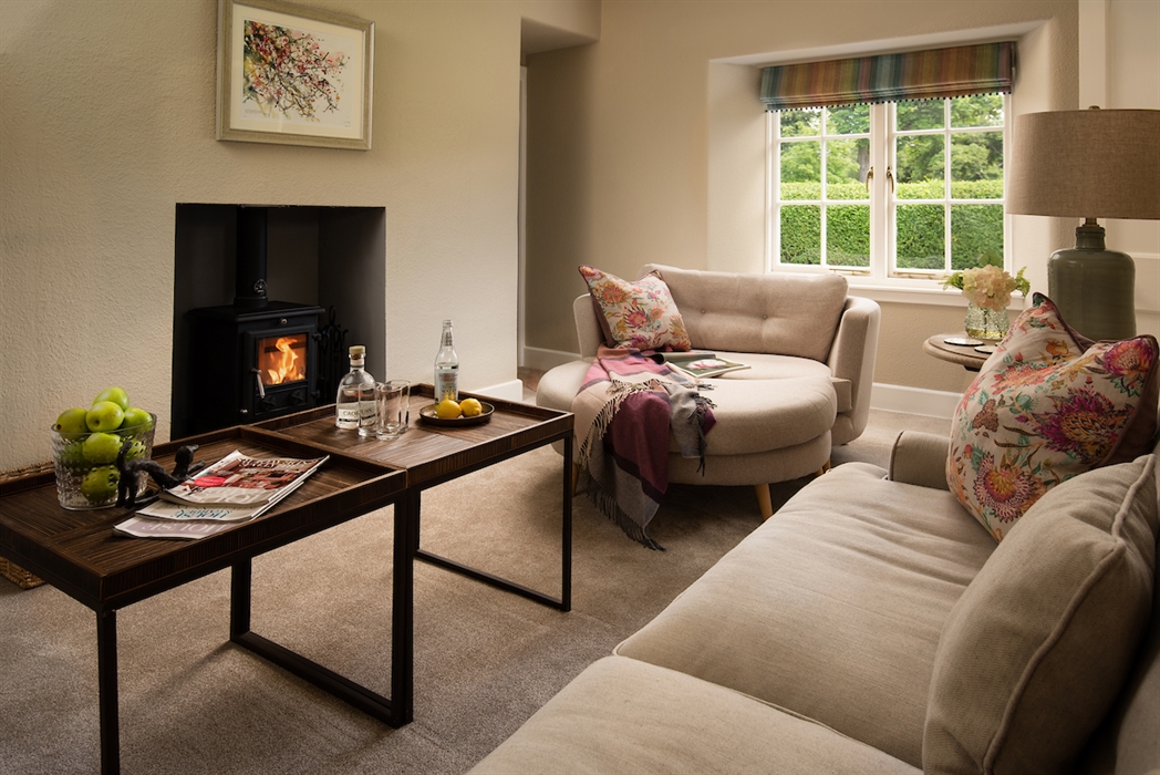 Entering Laurel cottage through the shared courtyard, you step into a homely kitchen, with pretty sage green walls and a rustic wooden dining table. This leads into the sitting room, which benefits from a large sofa and snuggler chair set around an atmospheric wood burner. Off the light-filled hallway are three bedrooms - two doubles and one twin, which share a stylish, timber-clad bathroom with a large walk-in shower with a rainforest head.