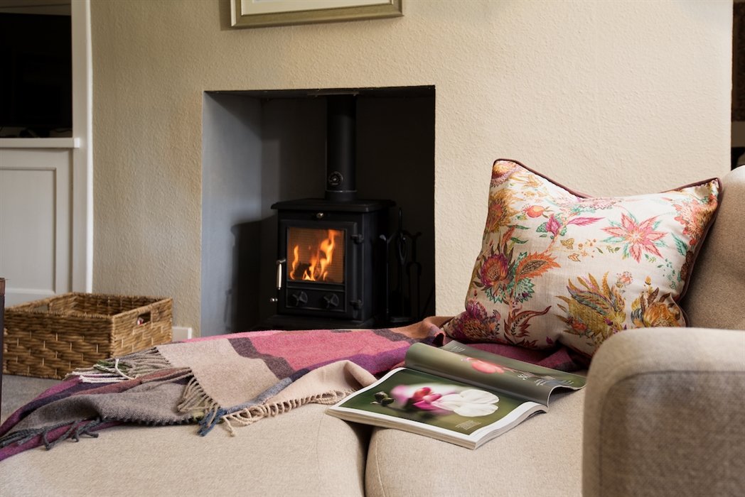 Sitting room with large sofa, snuggler armchair, Smart TV, wood burner (with initial supply of logs provided).