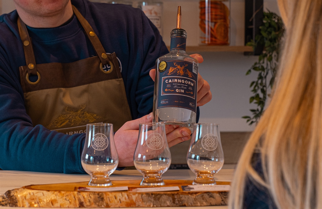 Nestled in Aviemore, beneath the dramatic peaks of the Cairngorm Mountains in the heart of the Scottish Highlands, Cairngorm Gin is a micro-distillery producing award-winning, small-batch craft gin inspired by the wild landscape.