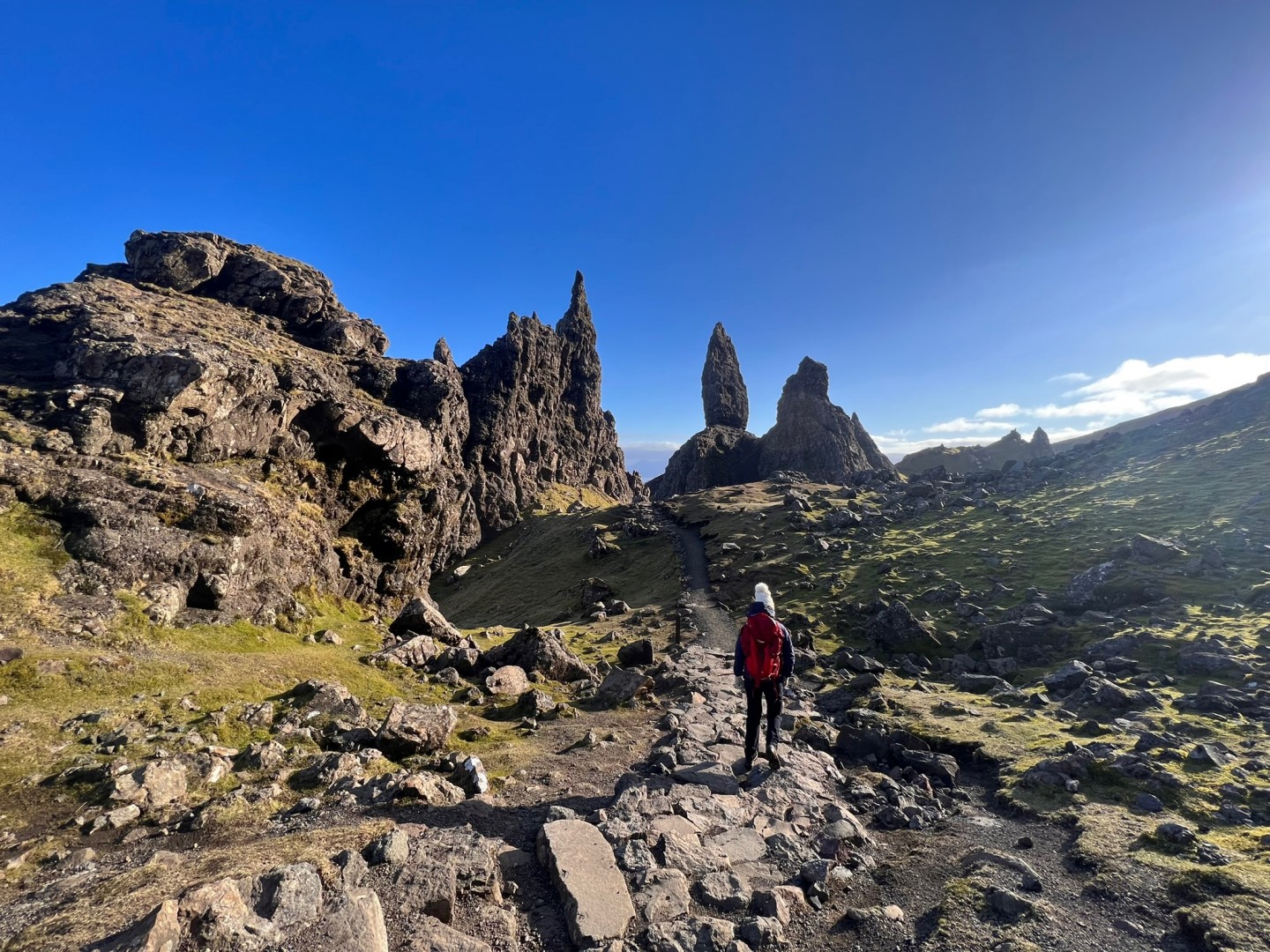We will hike from the carpark up to the base of the Old Man of Storr. This hike is steep and is approximately 3 miles (5km) in total.