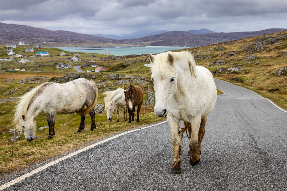 Esta pequeña pero singular isla se encuentra entre South Uist y Barra y es muy conocida por sus ponis salvajes de Eriskay, que deambulan libremente. Estos resistentes ponis son la última raza autóctona de las Hébridas que sobrevive y, gracias a su denso pelaje impermeable, están perfectamente adaptados para soportar las duras condiciones climáticas de la isla.