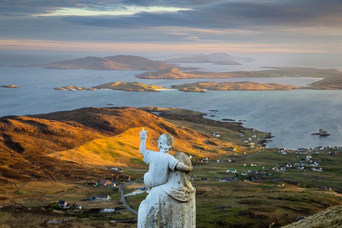 En South Uist, puedes seguir la Ruta de las Esculturas de Uist, que conduce a siete obras de arte situadas en distintos puntos de la isla. Conoce la historia de los jacobitas en el Monumento a Flora MacDonald o sigue el corto paseo circular hasta las Cladh Hallan Roundhouses para encontrar vestigios de la Edad de Bronce y disfrutar de magníficas vistas de la playa.