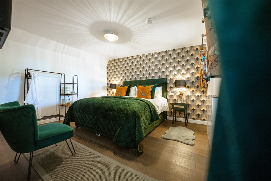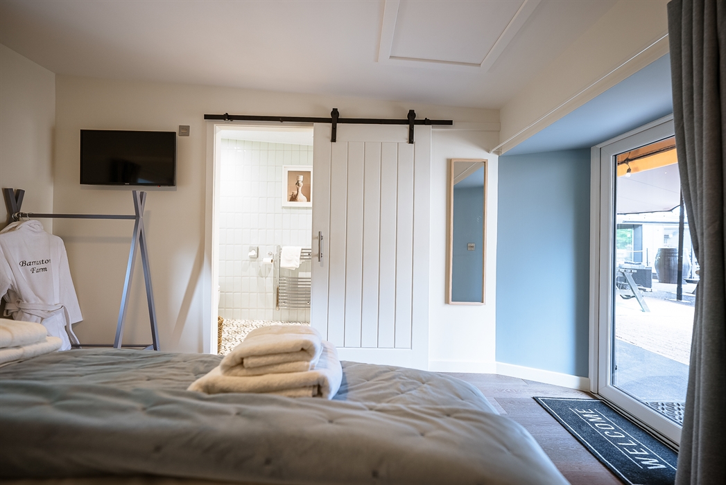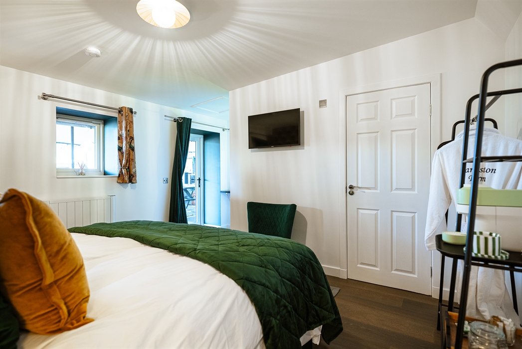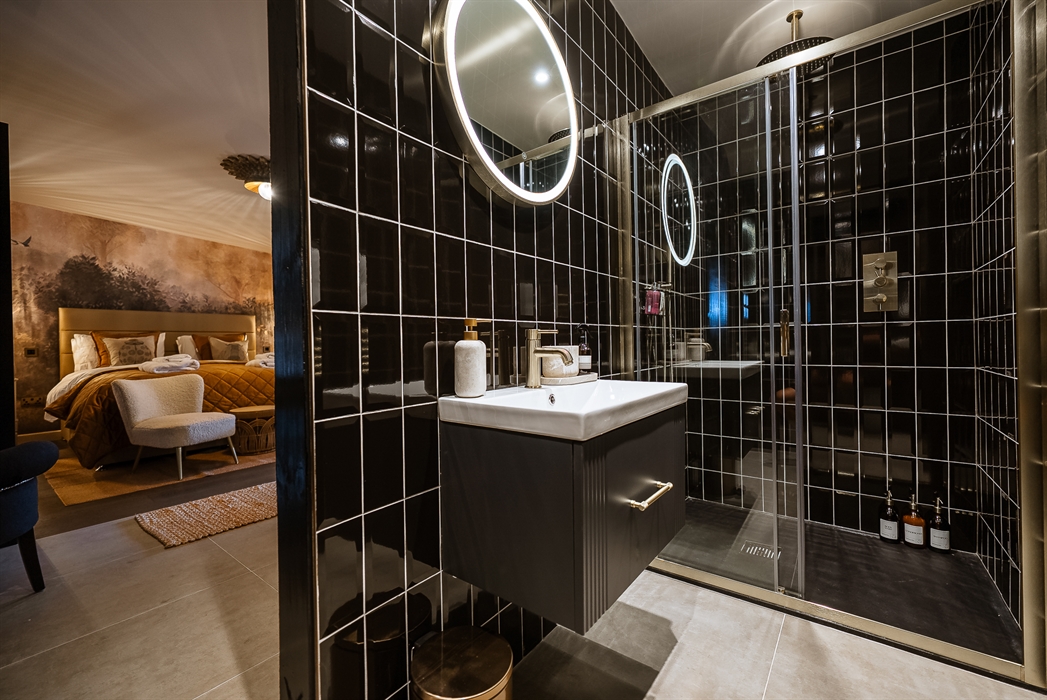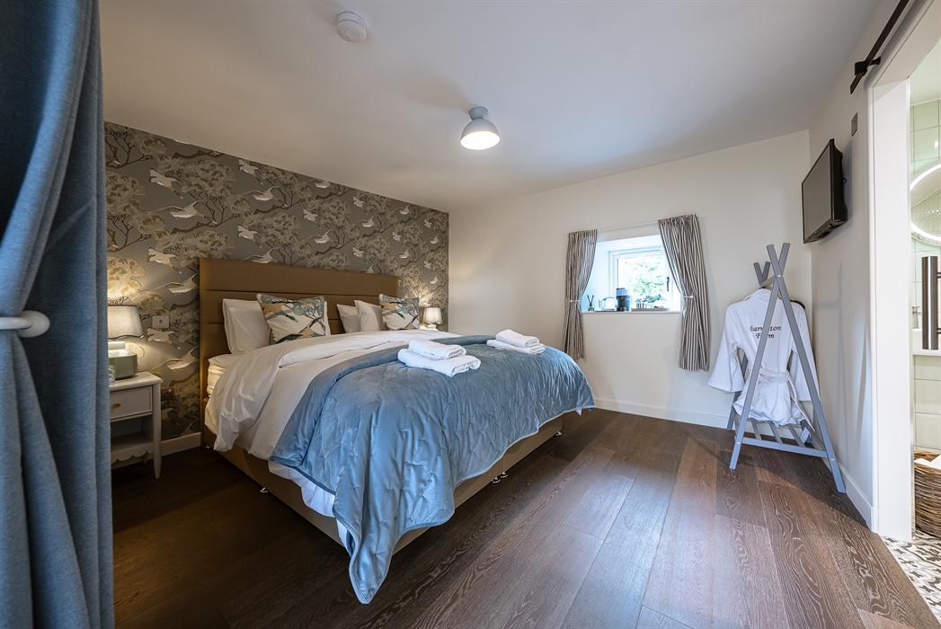 Perfect for larger groups, Barraston Farm welcomes up to 16 guests in luxurious comfort. The main cottage includes three beautifully decorated bedrooms, while the self-contained bothy provides its own en-suite bathroom and cosy bunk beds; a private nook perfect for families or children. Beyond that, three opulent stable suites – Peacock, Duck, and the romantic Dove Honeymoon Suite; add six more sleeping spaces. Each suite boasts sumptuous super-king beds and elegant en-suites, while the Dove indulges with a freestanding bath for the ultimate soak. This clever combination of shared social areas and private retreats makes the property ideal for extended families, groups of friends, or celebratory gatherings.