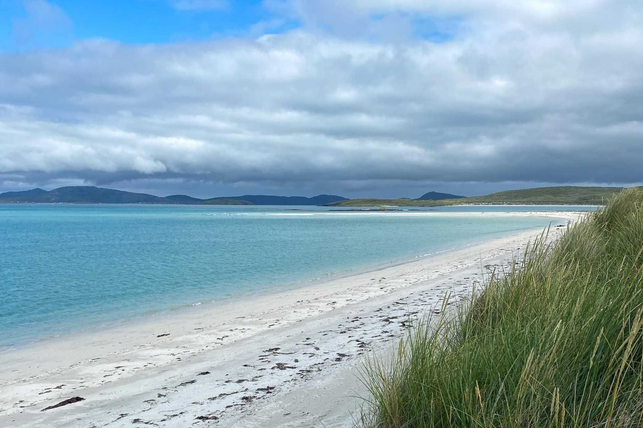 Les Traigh Hornais Clachan Sands, sur l’île de North Uist dans l’archipel des Hébrides extérieures, est une plage de sable blanc immaculé parfaite pour une promenade pittoresque ou un pique-nique en bord de mer. Ses eaux cristallines et sa baie peu profonde sont parfaites pour la plongée en tuba et la natation. Allez vous promener au crépuscule pour profiter d’un coucher de soleil sur l’une des plus belles régions d’Écosse !