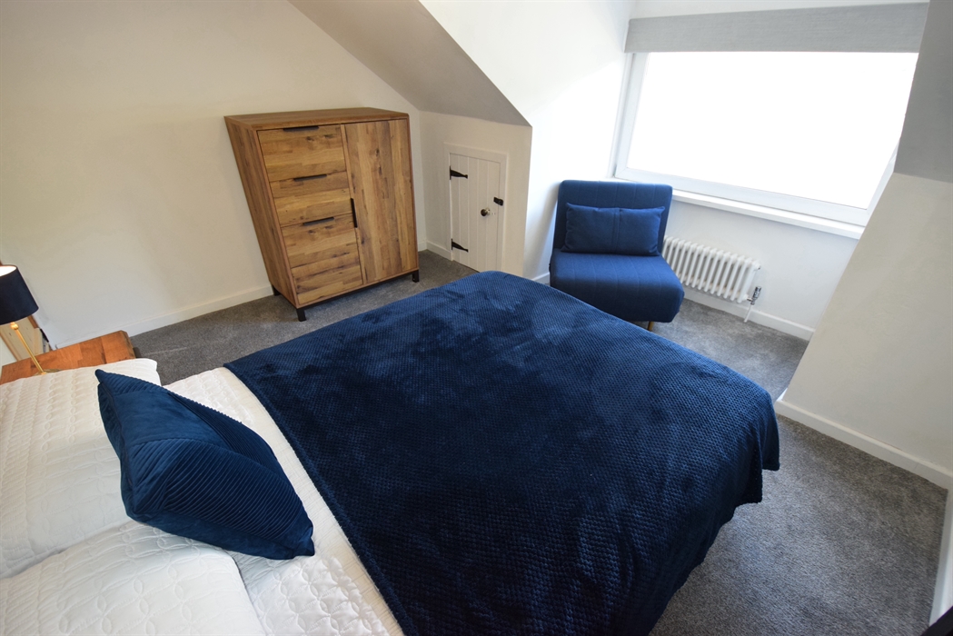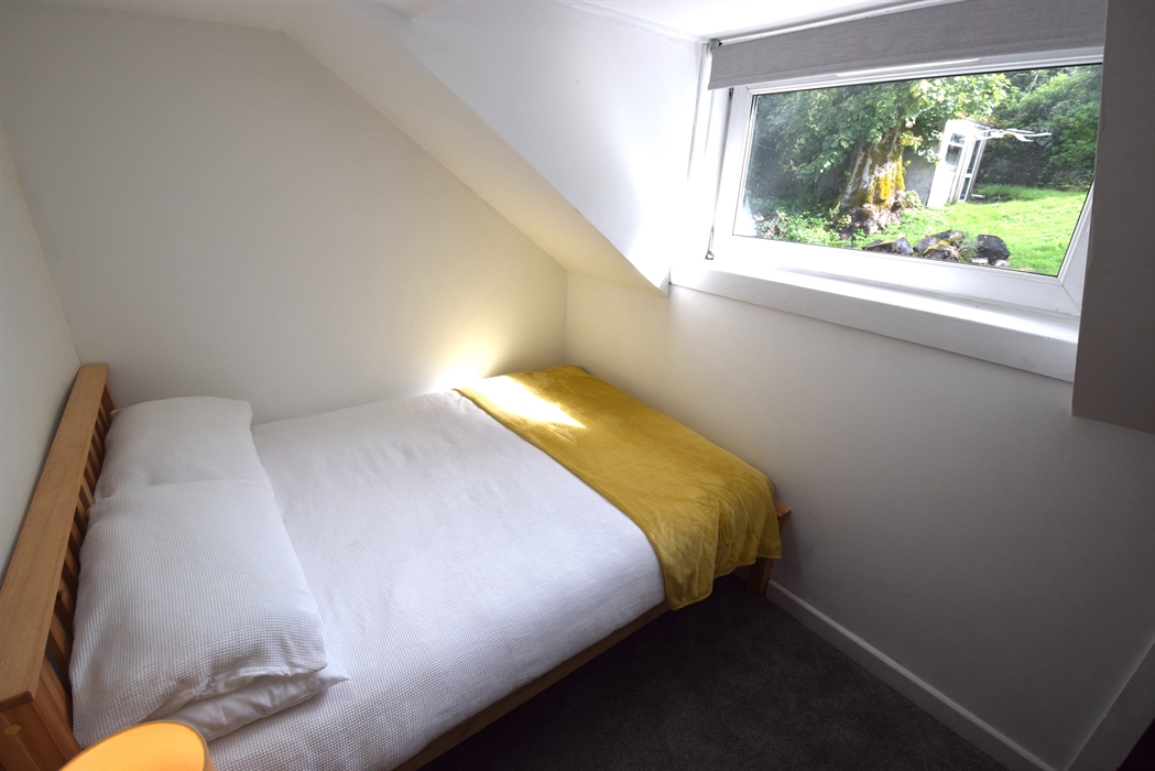 Ground floor: Entrance, Bathroom with electric shower over the bath and w.c., Open plan lounge and kitchen. Upstairs: 2 double bedrooms. Master bedroom with loch view, wardrobe, drawers and hanging space. 2nd bedroom is best described as compact with a combed ceiling and chest of drawers.