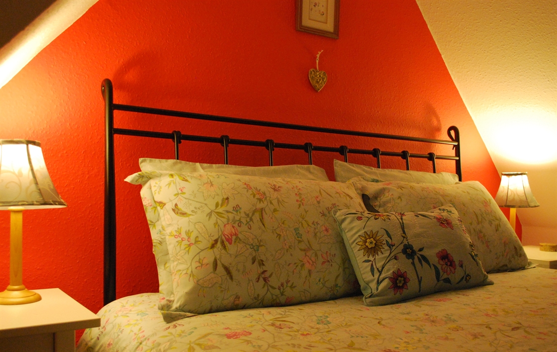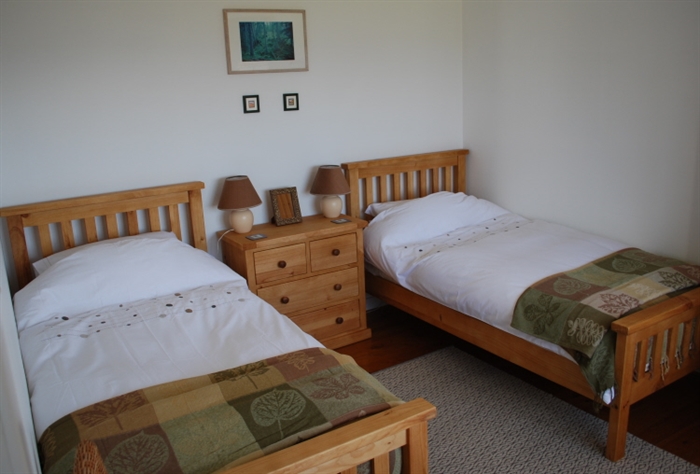 Twin bedroom with excellent sea view. Pine beds and furnishings.