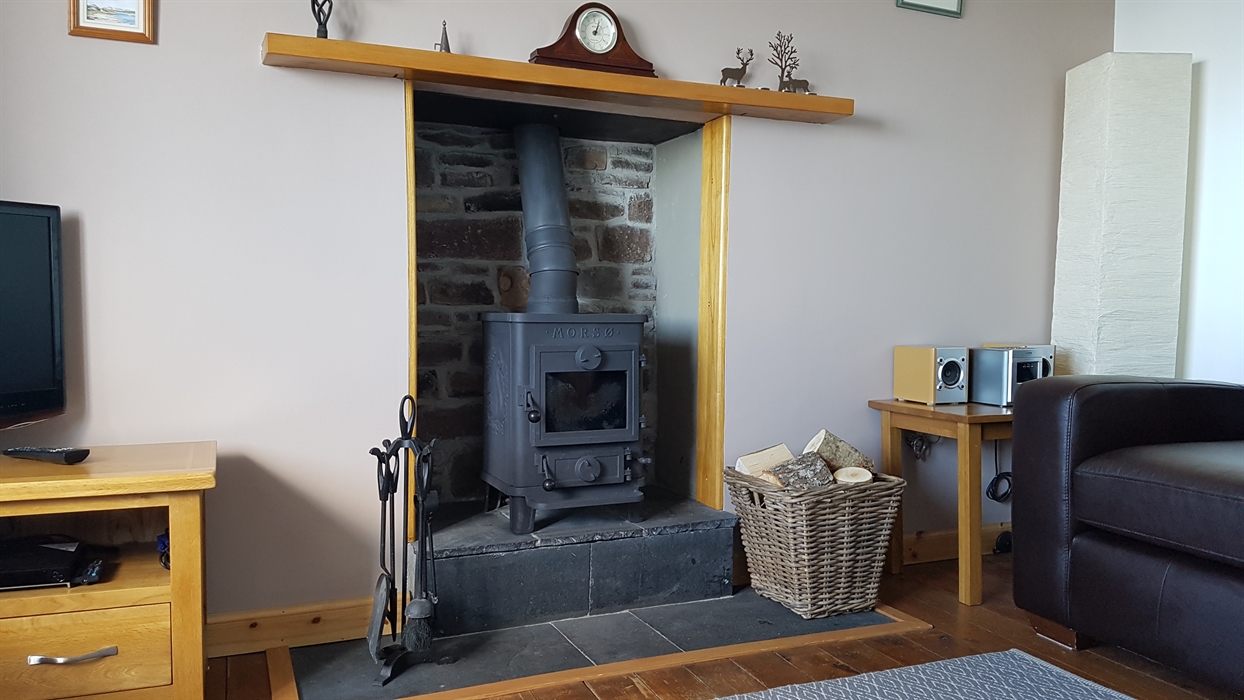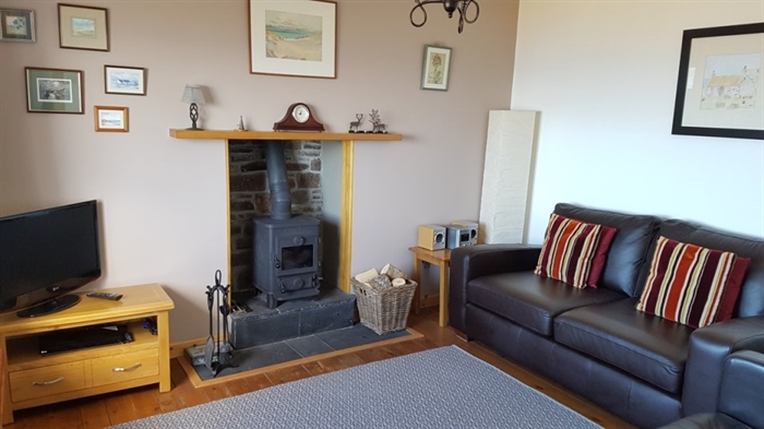 Comfortable sitting room with excellent sea view and a multifuel stove with starter pack of logs provided. Flat screen TV (1080P/Freeview), DVD Player and a Radio/CD. Comfy sofas and oak side tables. An attractive window seat lets guests sit and watch the waves, skys and sunsets.