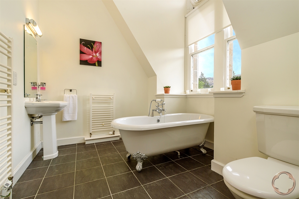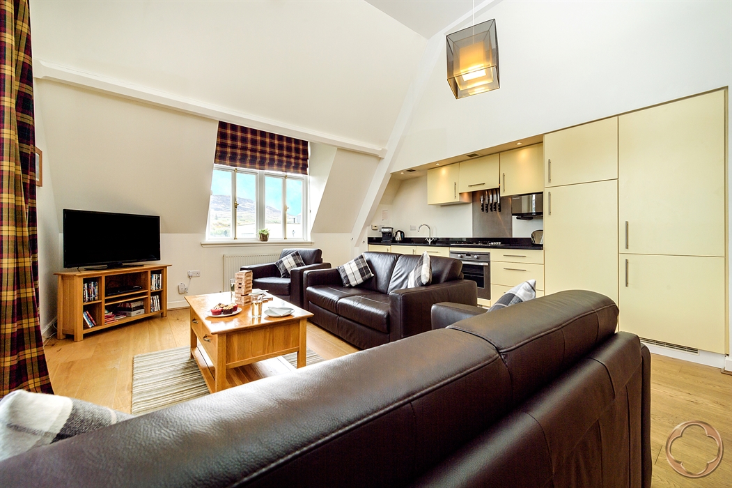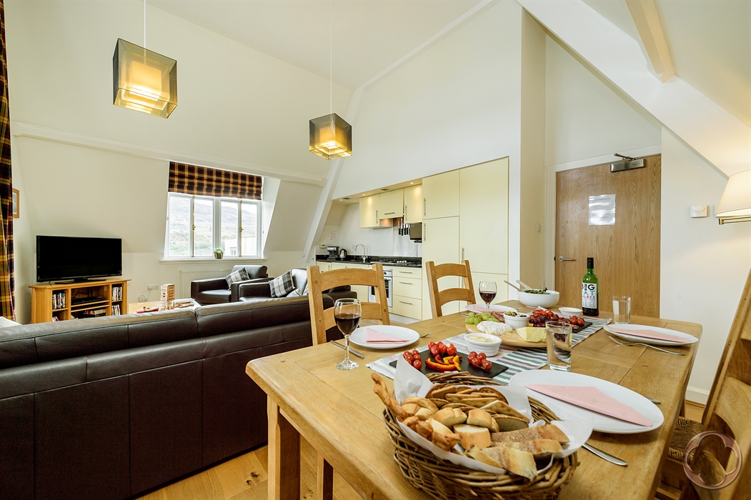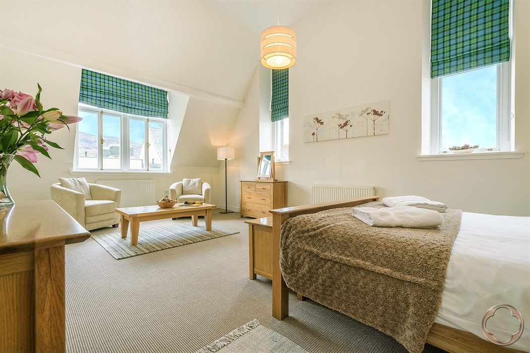 18 The Monastery is a stunning top-floor, two-bedroom apartment nestled within the historic Monastery building of this beautifully restored Benedictine Abbey. Perfect for couples or small families, this luxury self-catering accommodation sleeps up to four guests and offers a truly unique Highland experience.