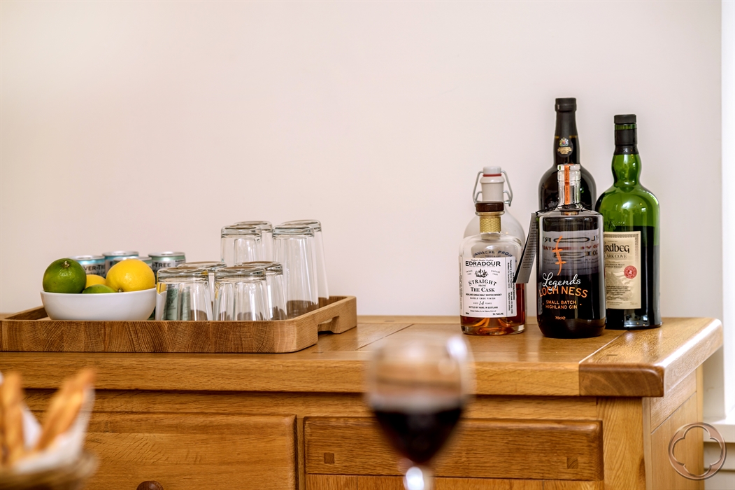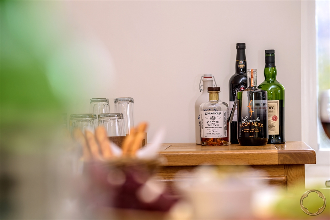 The dual-aspect, open-plan living area is flooded with natural light, thanks to its grand stone mullioned windows and soaring double-height ceilings. From here, enjoy breathtaking panoramic views across Loch Ness and southwards toward the rolling hills and Abbey gardens.