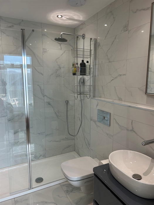 Lower Level: King size bedroom, ensuite shower room, smart tv; Double bedroom with ensuite shower room, access onto balcony; Twin bedroom with access to patio balcony, smart tv; Family bathroom with bath and shower over, WC and sink.
