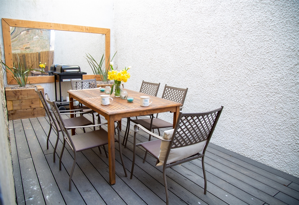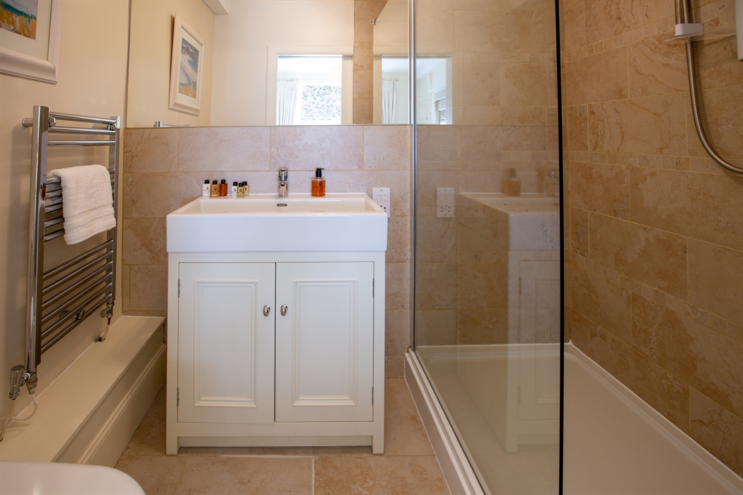 The house is on two levels and has a small courtyard with table and chairs out the back, for fresh air or smoking. On the ground floor you have the kitchen/diner (with outside access) and a twin bedded room with en suite shower room. Upstairs you have a small single bedroom next to the King (UK King is 5ft wide) bedroom, sitting room and a further shower room. Both bathrooms have underfloor heating and heated towel rails. The house is full of character with varying door heights and widths. We have the full Sky TV package upstairs in the sitting room and downstairs in the kitchen. The kitchen table is set up as a small round table, but you can extend it to be a larger oval table if you want, this will take up more room in the kitchen though. Travel cot (bring own bedding), baby bath, and high chair available if requested. As the 2 bedrooms upstairs share the same bathroom, if used for its maximum of 5 people, this property is best for a family group.