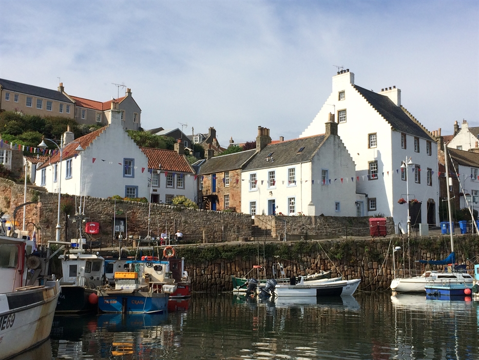 Located in a small quiet courtyard, overlooking the harbour in the picturesque East Neuk of Fife village of Crail, with superb sea views over the Firth of Forth.