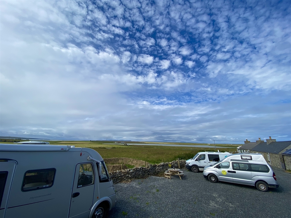 Small pet friendly campsite and motorhome Aire in Sanday, Orkney. Pitches nestled in an elevated four acre wildflower meadow with panoramic views out to sea. New luxurious bathroom, hardstanding for motorhomes and caravans, open all year.