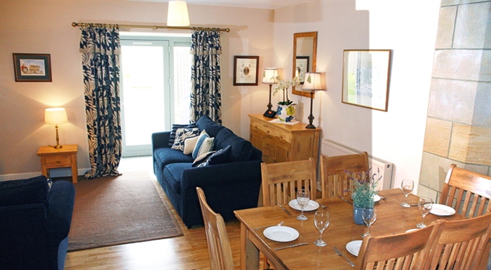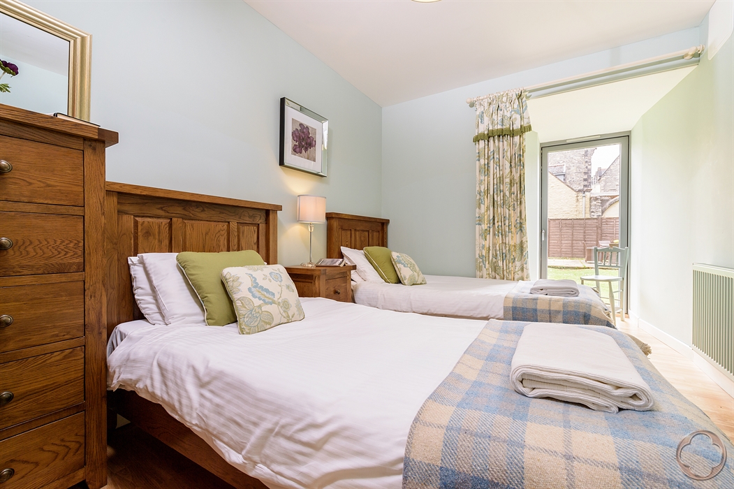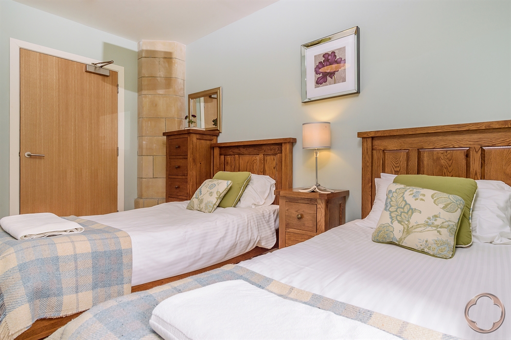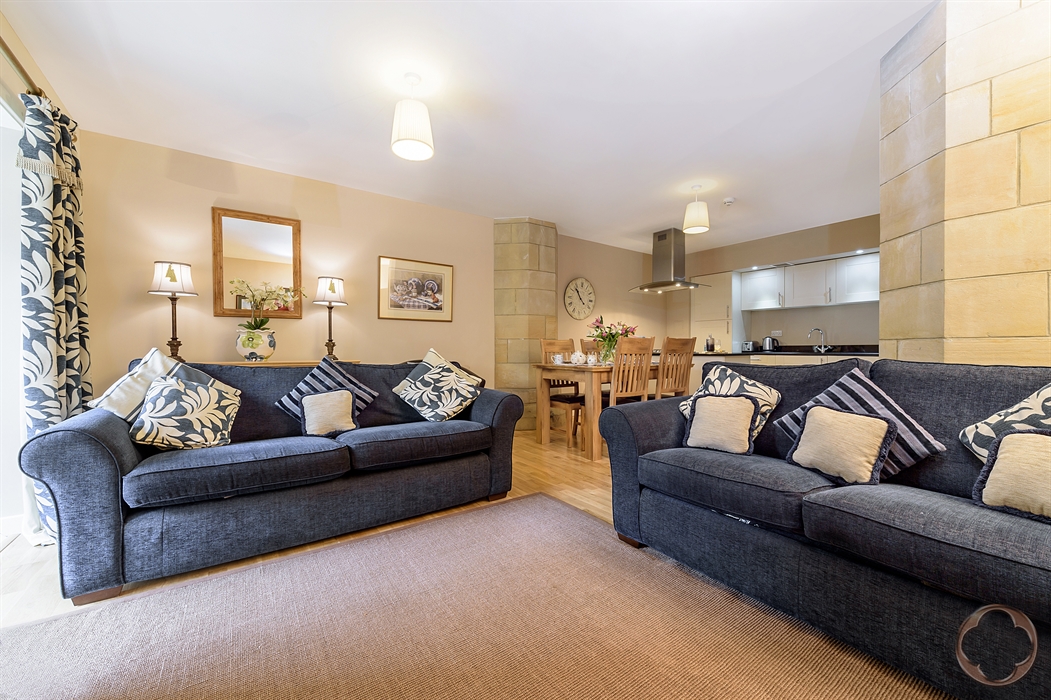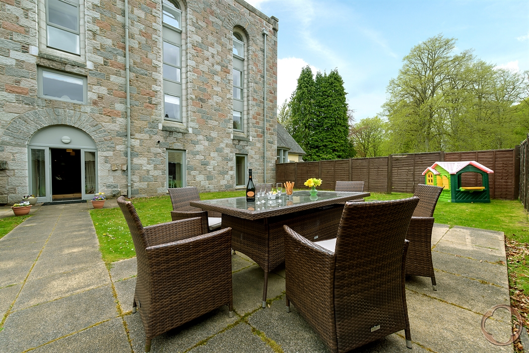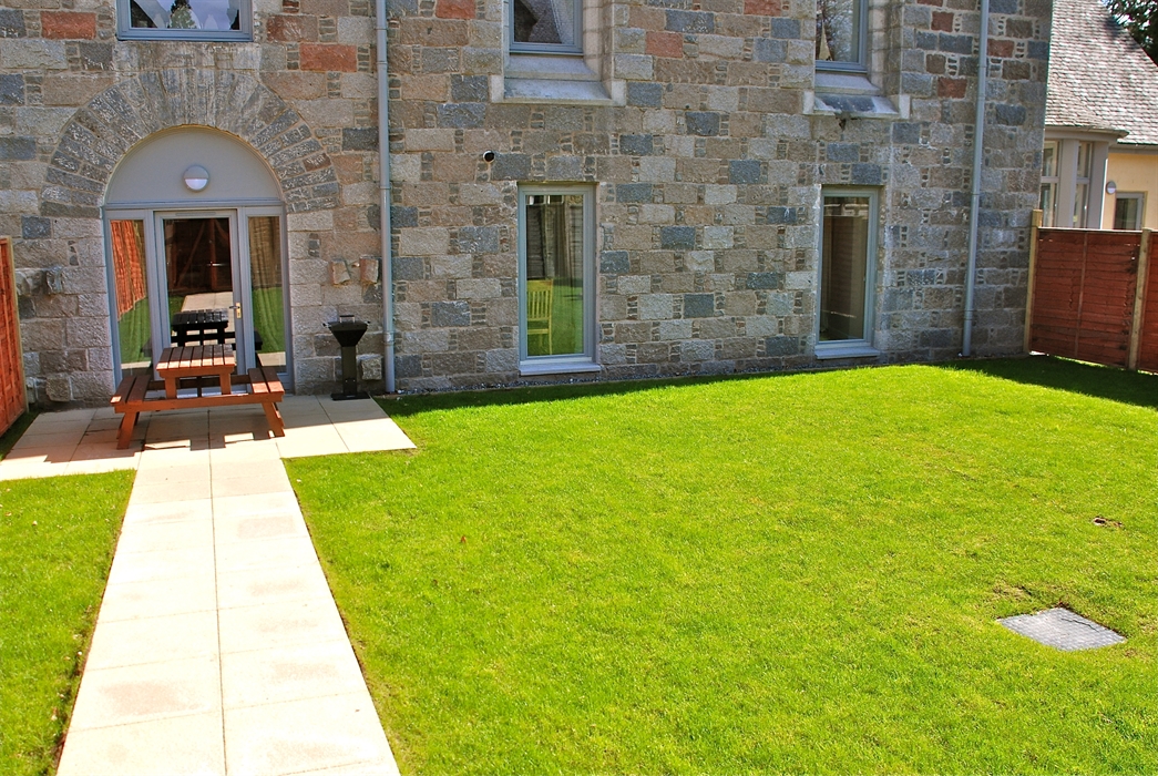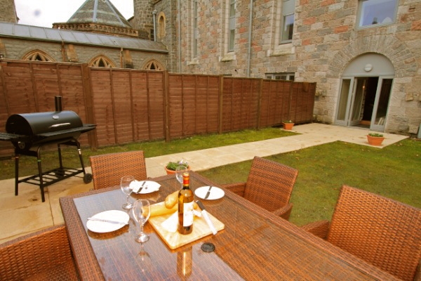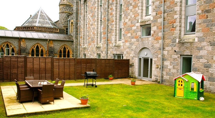 Abbey Garden apartment features the original stone pillars of the Abbey Church. Tastefully decorated, coupled with beautiful furnishings this property is both comfortable and spacious. The lounge opens out on to a pretty private terrace with BBQ and enclosed south/west facing garden and offers a double sofa bed. This property will appeal to guests with small children or who enjoy eating outside during the light summer evenings. As this property is located on the ground floor with direct access to the garden it is also a suitable option for guests with low mobility. The two spacious bedrooms have french doors opening out on to the lawn with views out towards the Moat House and cricket pavilion. Abbey Garden is conveniently located with easy access of the Spa and swimming pool. For group reservations it is in close proximity to St Andrews Chapel. As a guest you will have access to all The Highland Club has to offer. Our property manager will meet you on arrival and show you to your accommodation.