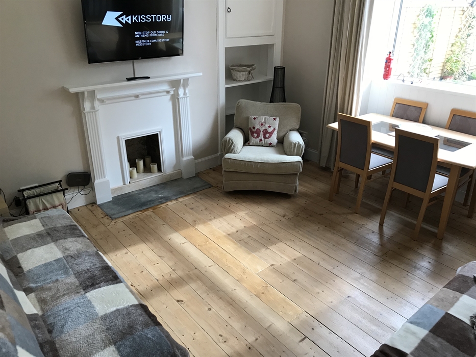 One bedroom cottage-appartement in central Dunfermline, with private back garden, including a small putting green.