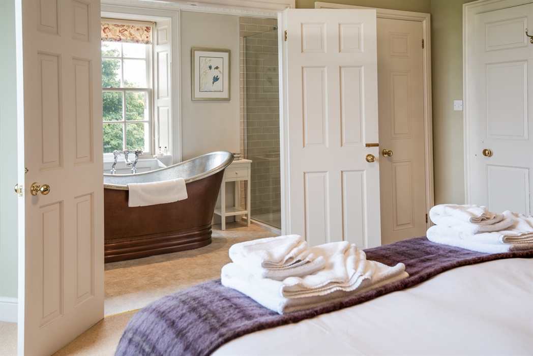 The beds are made up with luxurious feather duvets and pillows and White Company Egyptian Cotton bed linen. A White Company bath sheet and hand towel is provided for each guest.