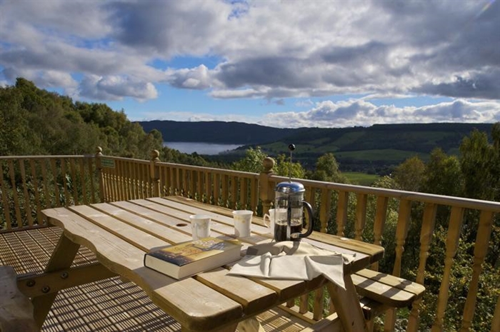 This select development, designed and built by local craftsmen, enjoys south facing panoramic vistas of Loch Ness, the village of Drumnadrochit and beautiful Glenurquhart. Each lodge is exceptionally comfortable and inviting and sleeps up to 6 guests in 2 king bedded rooms and one twin room, (8 and 9 have 1 king and 1 double bedded room and 1 twin). Type A lodges have a bathroom, separate toilet/shower room and wash basin, while others have all en suites. Furnished and equipped to a very high standard, they are all well insulated, fully double glazed and centrally heated, with patio or balcony so you can enjoy the beautiful surroundings outdoors. Lodges 7, 8 and the Green have a conservatory lounge, providing added space for relaxing and enjoying the views of Glenurquhart and Loch Ness.