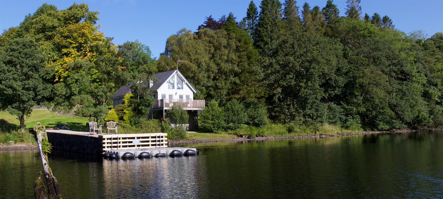 Achnacarron Boathouse stands in 6 acres of secluded, south-facing grounds with its frontage on Loch Awe, the longest freshwater loch in Scotland.
