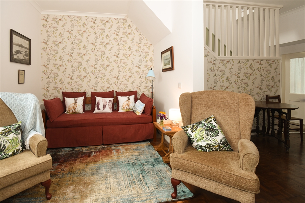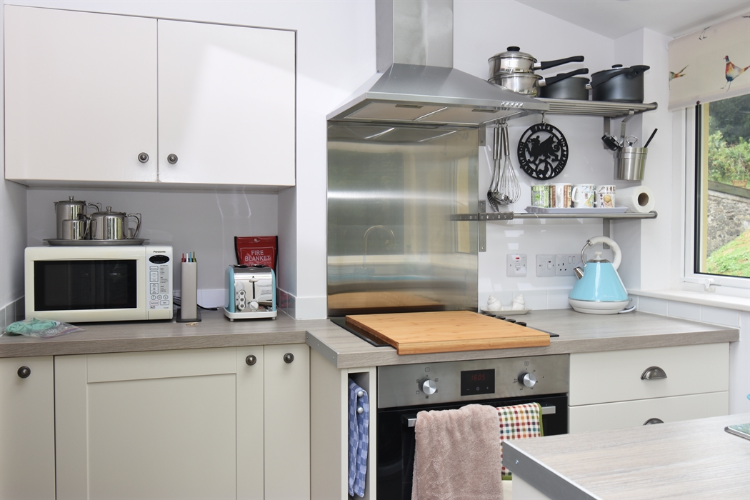 Accommodation - One bedroom upstairs with king size bed and room for full size cot if required. Downstairs there is a comfortable sofa bed which sleeps one. It is an open plan lounge/dining area with a cosy woodburning stove. Downstairs bathroom with shower over the bath, The kitchen is small but perfectly formed with everything you might wish to cater for a small family. All linen and towels provided and a full selection of books, maps and guides for your use. Also TV, DVD player, hairdryer, washing machine and complimentary wifi.