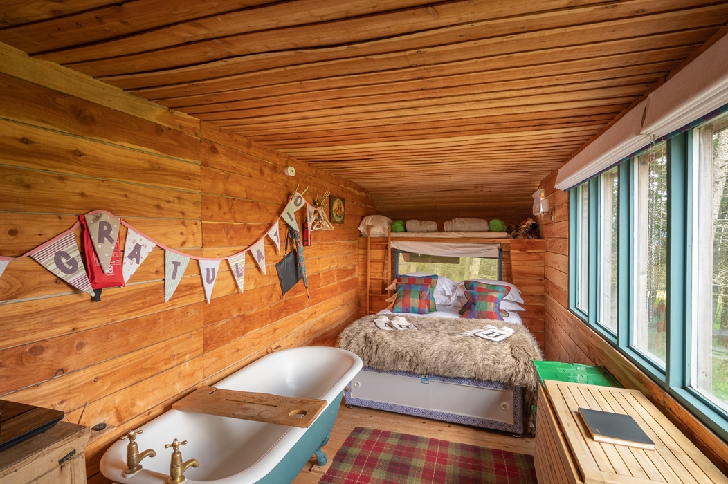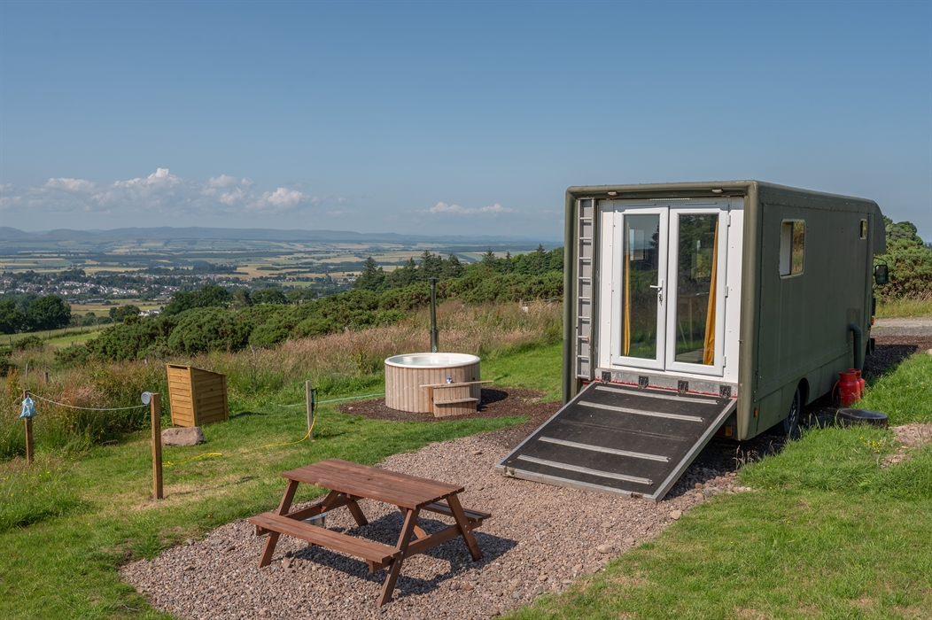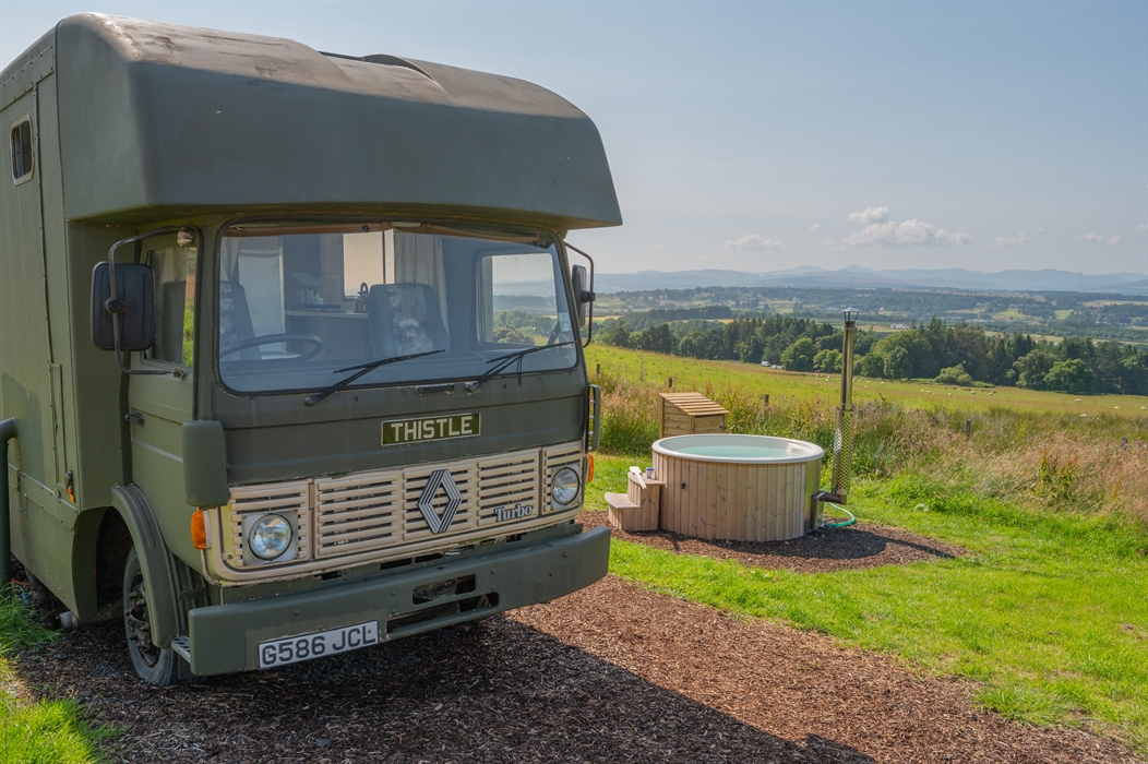 Two stunning luxury yurts, with cosy wood burning stoves, and simply stunning views. Two converted luxury horse lorries, child and dog friendly (1 dog by prior arrangement), with roll top bath, lorry cab bed for 2 small kids (u10) All our gorgeous accommodations have wood-fired hot tubs for star gazing the night away, glass of something in hand.....