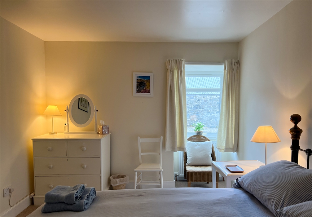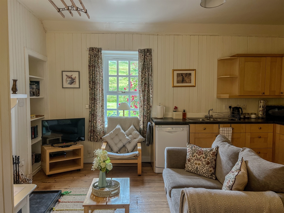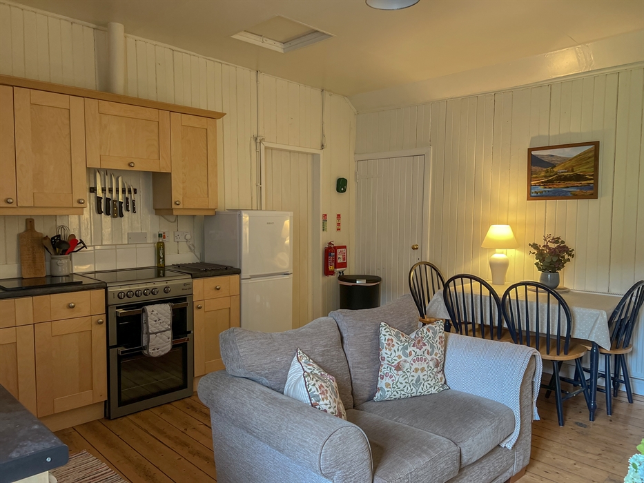 A cosy but spacious cottage with a warm and relaxing feel. An entrance porch with space for outdoor kit leads to a fully equipped open plan kitchen and lounge area, complete with a wood burning stove. A further utility space connects the lounge to a large double bedroom and a good-sized bathroom, with a shower and bath to soak in after a day out. The Bothy sleeps two guests with space for one small child on our single bed and/or a cot (cot to be brought by guest).