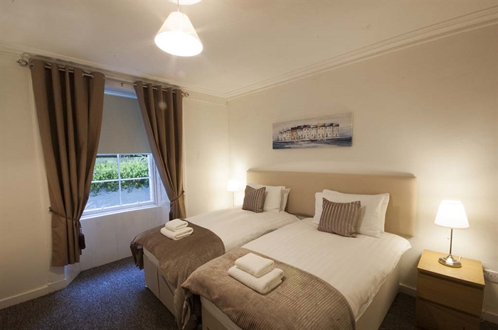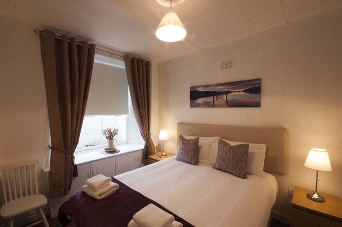 Accessed down a flight of original stone steps, the one level accommodation comprises a Living room with original fireplace and table and seating for 4 people, two large double bedrooms one of which has the flexibility of being either a zip and link super king size or two single beds, bathroom with over bath shower and a modern kitchen with washing machine dishwasher and full size fridge freezer.