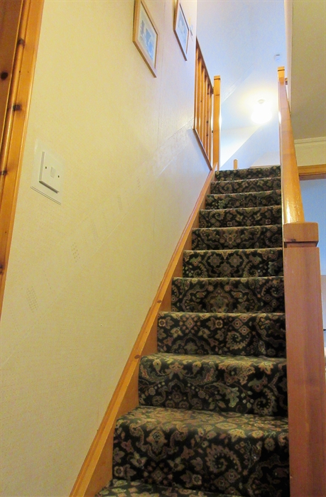 Staircase leading to open first floor gallery with double bed and shower room off containing shower, wash basin and WC.