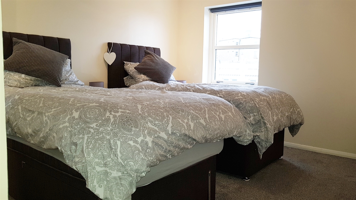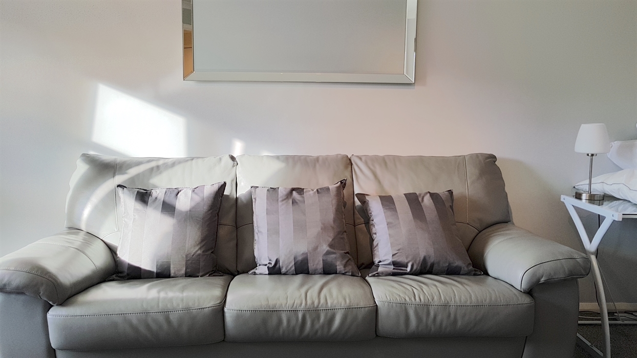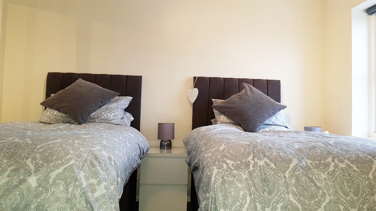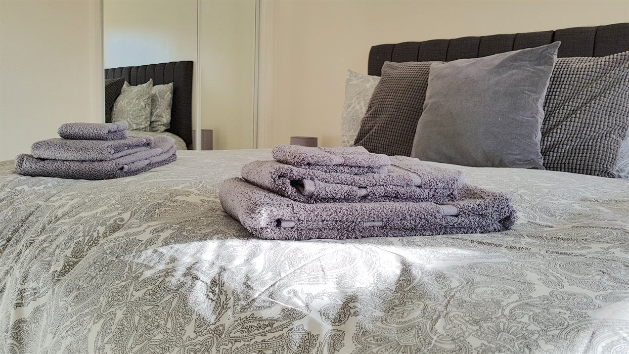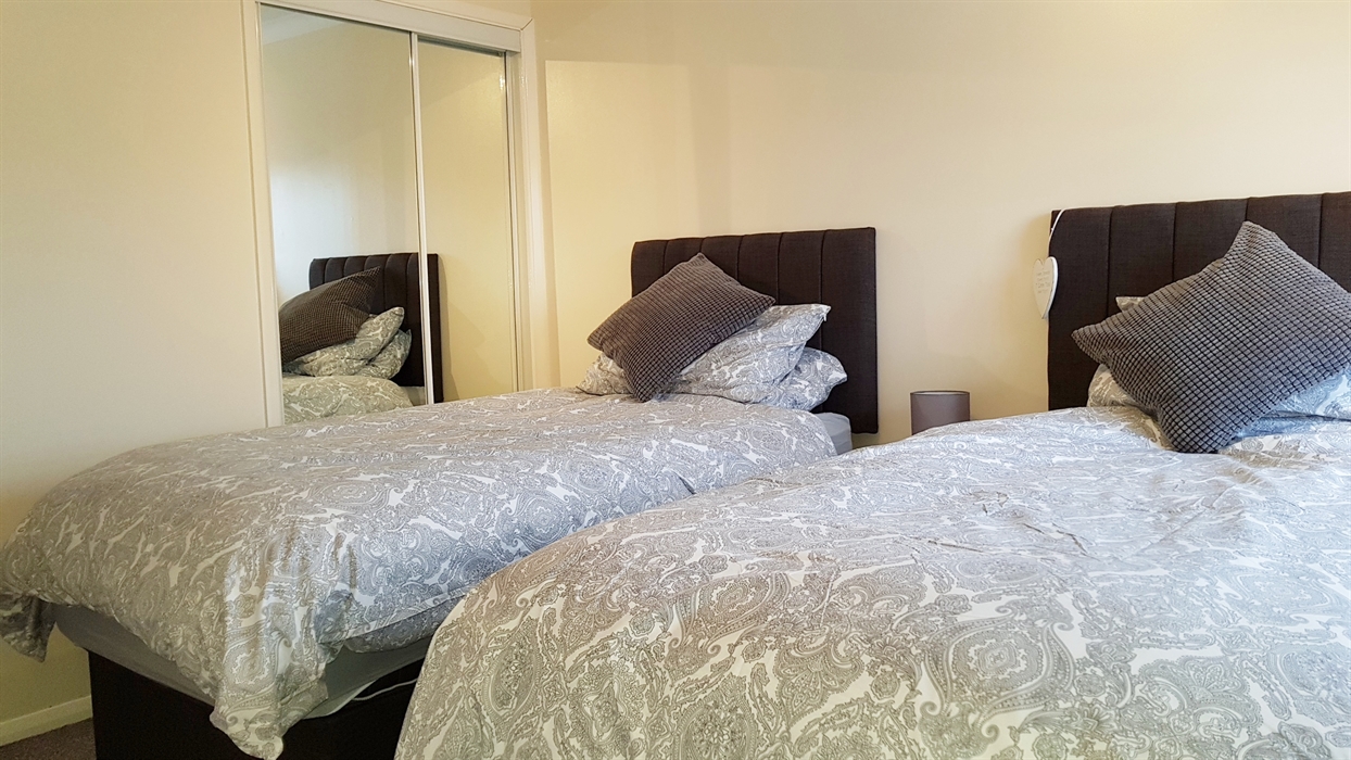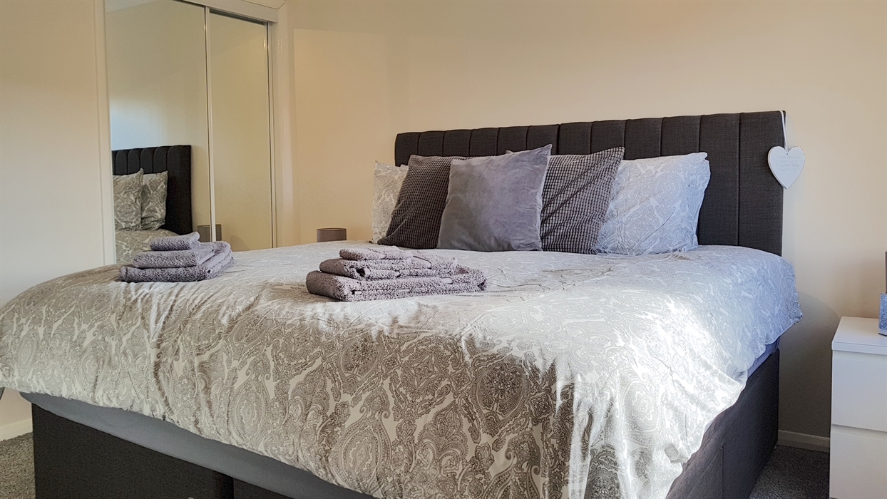 - A mixture of Super King Size and Single beds in the bedroom, with premium linen and towels provided. TV Lounge with Kingsize Sofa Bed.
