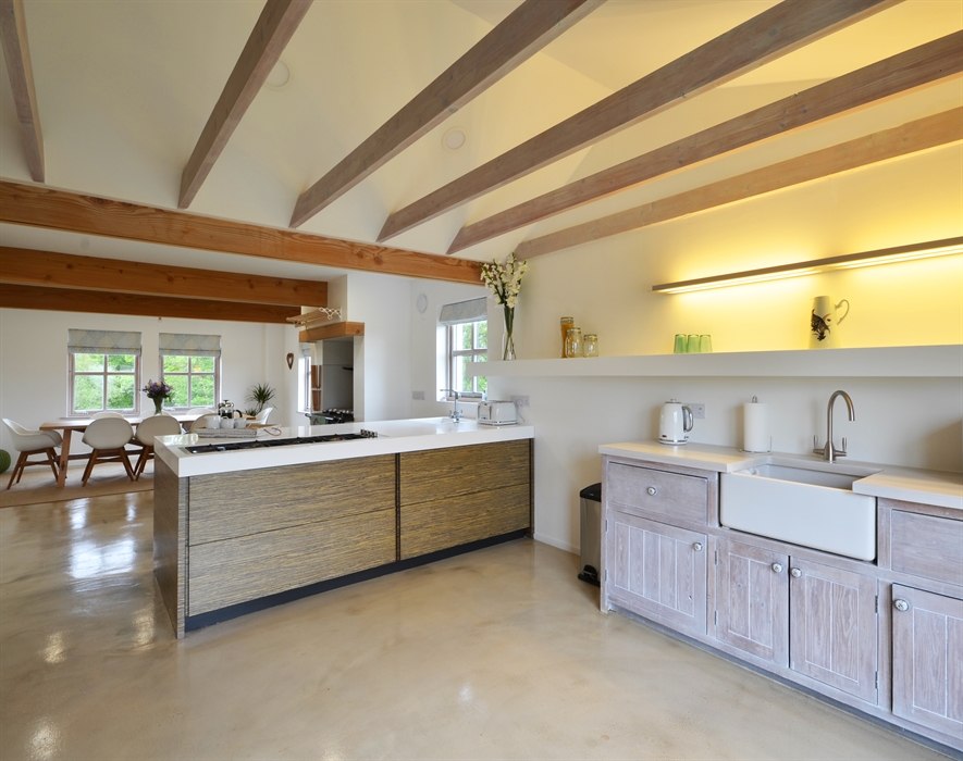 The vast kitchen has been beautifully appointed with a large island to cook at, a traditional Belfast sink and a very elegant and spacious dining area at the other end of the room. Also on this level is a handy utility room that houses the laundry facilities neatly out of the way.