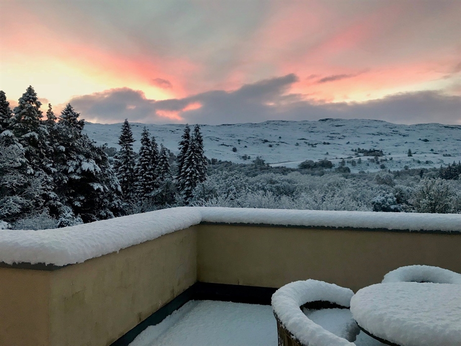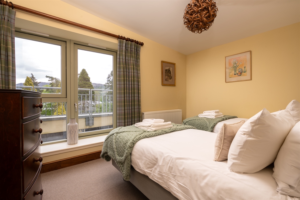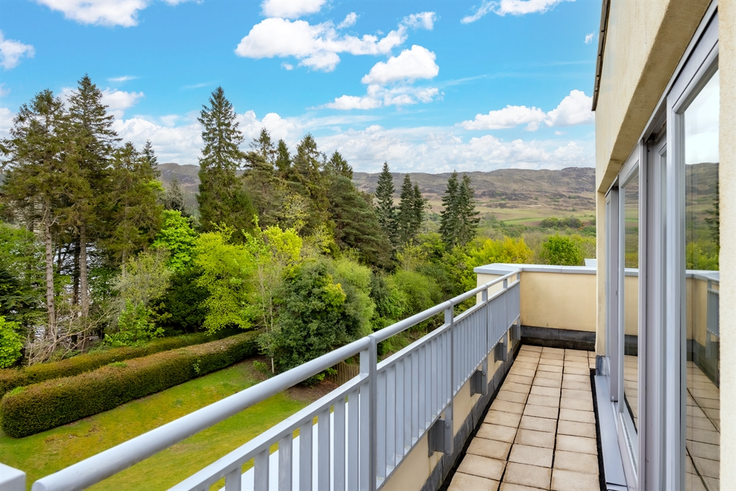 A stunning penthouse apartment on the third floor of The Abbey Church at The Highland Club this summer. A large 2 bedroomed duplex apartment with a balcony on 3 sides affording beautiful views both up the loch and over the mountains.