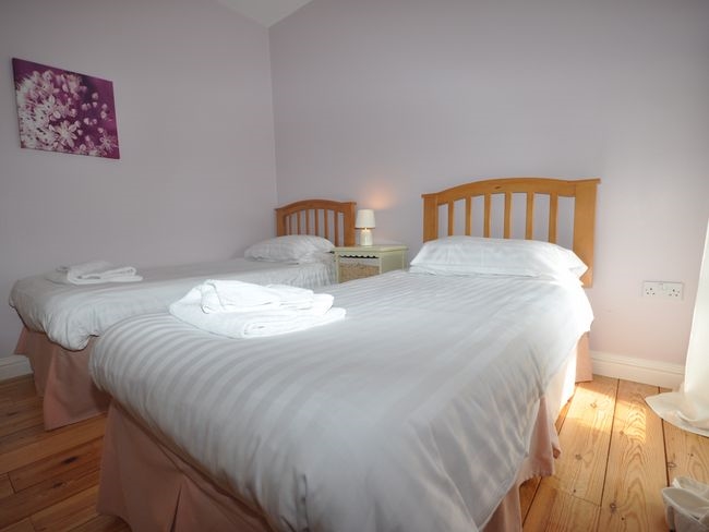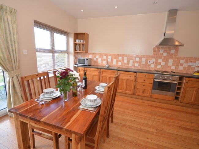 The accommodation offers TWO bedrooms: 1 double four poster bed with en-suite shower room with WC and 1 twin. Bathroom: bath with shower over and WC. Lounge/kitchen/diner: open-plan with Freeview TV and DVD. Kitchen area with electric oven, hob, fridge/freezer, microwave, washing machine and dishwasher. Amenities: 2 dogs welcome. Additional info: please be aware that there are steps in the garden. Use of freezer in external building on request.