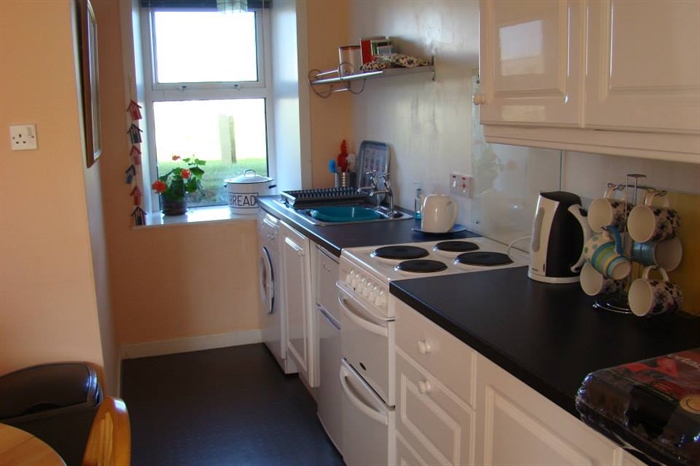 In Annie's Place there is a well equipped kitchen/ diner, and a modern bathroom with shower over the bath. The cosy sitting room has comfortable leather armchairs and sofa with Wifi, TV, board games, jigsaws and books. The furniture, fittings and bed linen are of excellent quality, as the flat is regularly refurbished and updated. Orkney seascapes by one of Scotland's leading artists, Rosanne Barr, are featured within the flat.