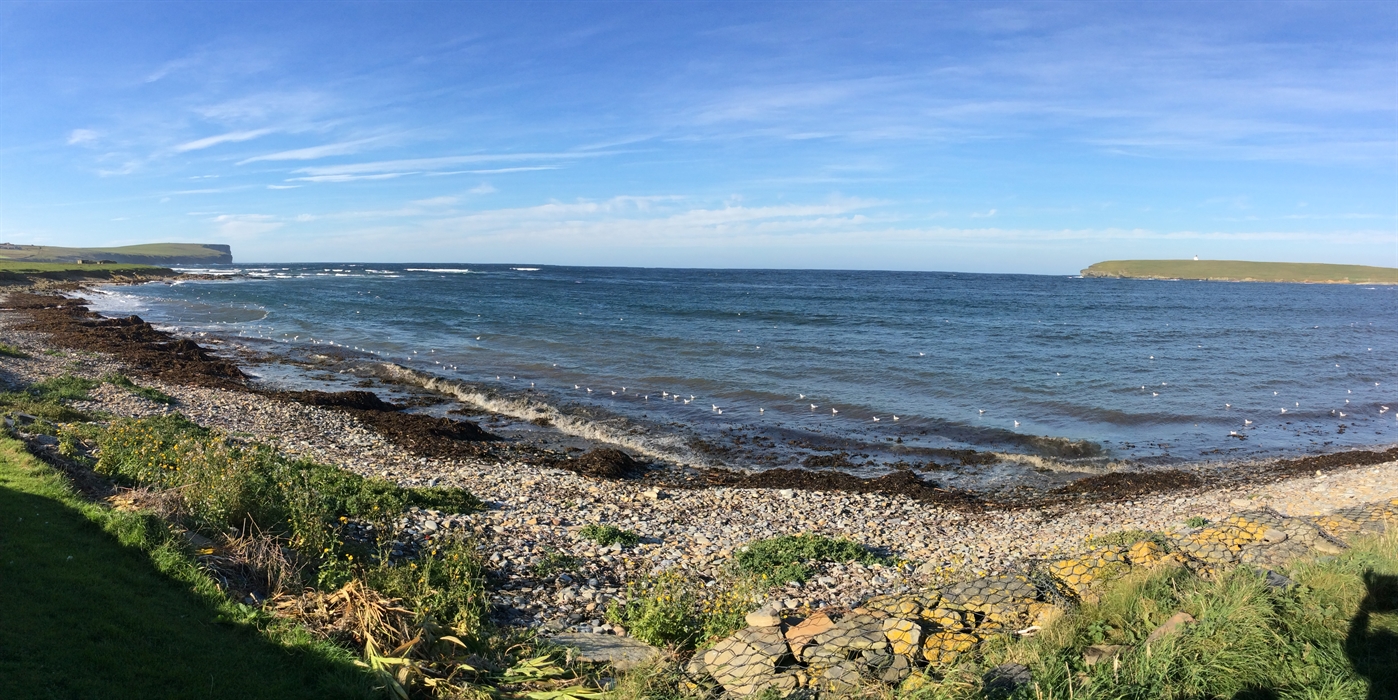 The view from our shoreline wall is included in the Scot's Magazine's July 2025 issue called Island Inspirations. The view is of Birsay Bay and the tidal island of Brough of Birsay; a ten minutes coastal stroll from Annie's Place. In spring and summer its heath land is covered in wild flowers and its cliff faces become seabird "nurseries", including puffin colonies with terns and sand martins also nesting nearby. At all times of year the seaviews are dramatic. Many guests make this their daily walk!