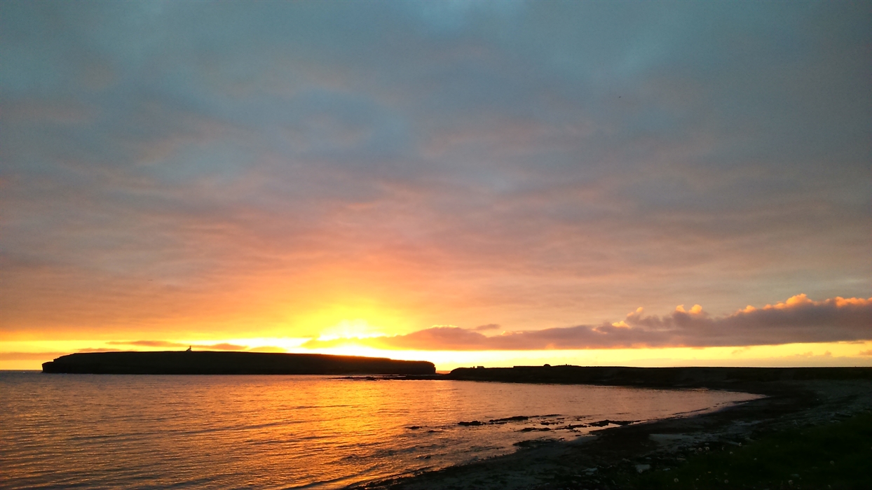 Guests are welcome to sit and relax on our shoreline bench directly above the Birsay Bay sea shore which is alive with birds and "singing seals". Many guests enjoy a lunchtime snack, coffee break or glass of wine whilst relaxing in this "midge free" haven! Wonderful sunsets, long summer evenings, and exciting sea scenes are features of the view from this vantage point. If you are lucky, from the end of August through to March the Aurora Borealis may make an appearance during your stay.