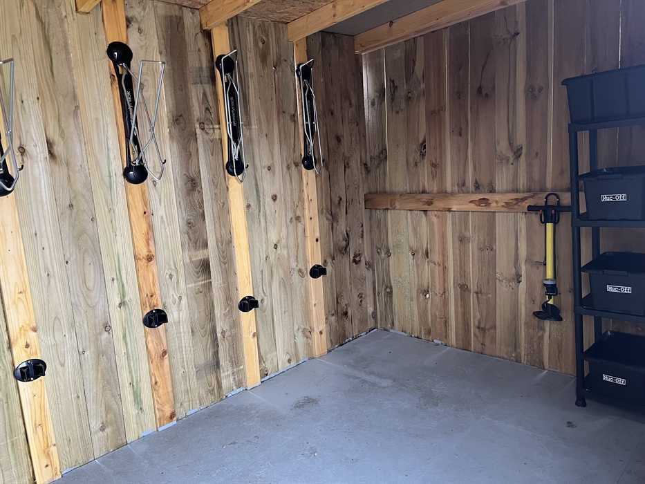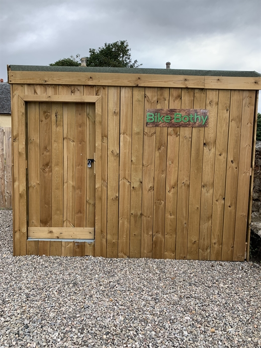Behind the pods there is a Bike Bothy with Upright Bike Storage and Bike Maintenance Kits.